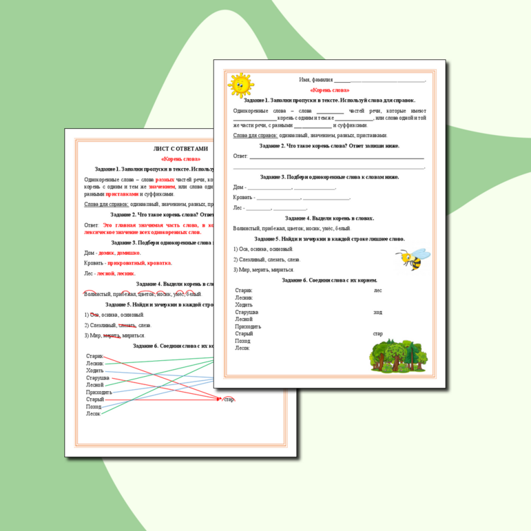 Рабочий лист корень слова 5 класс 99 фотографий