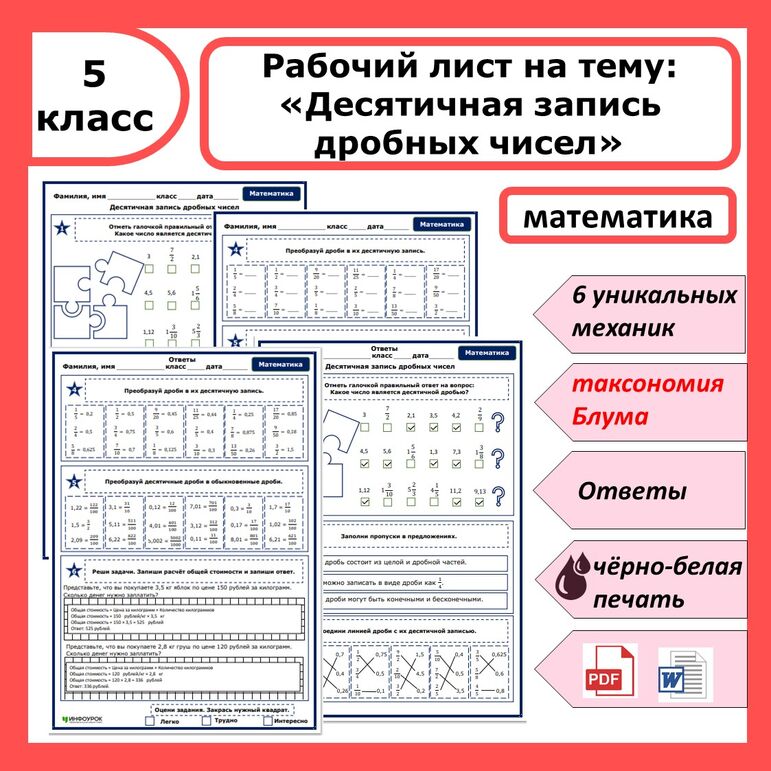 Рабочий лист на уроке математики 124 фотографий