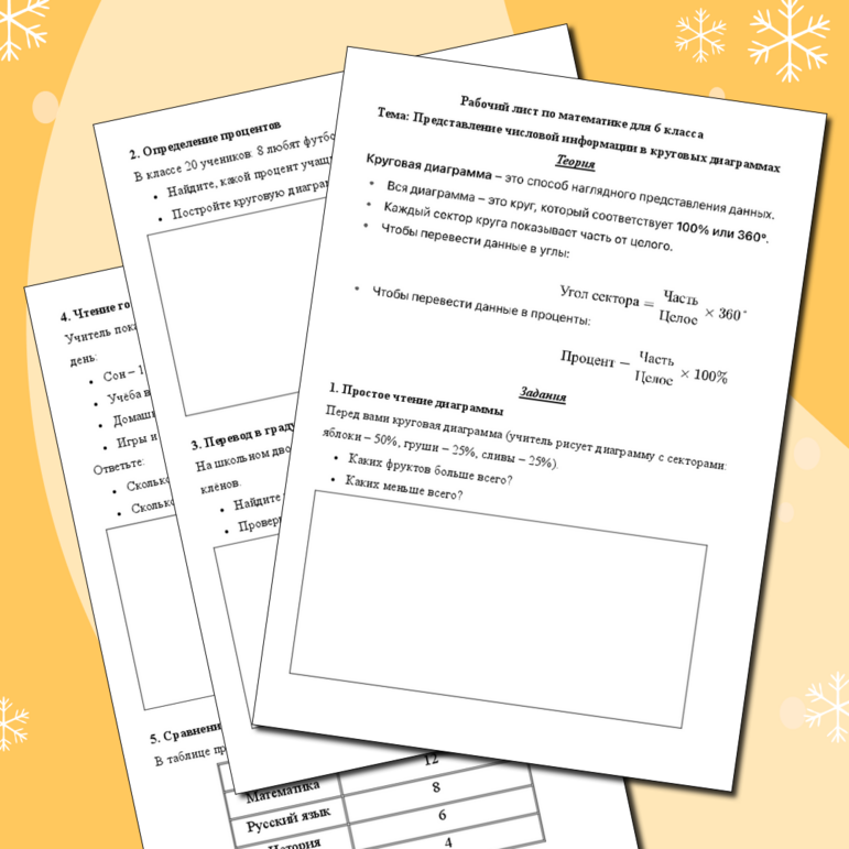 Рабочий лист на уроке математики