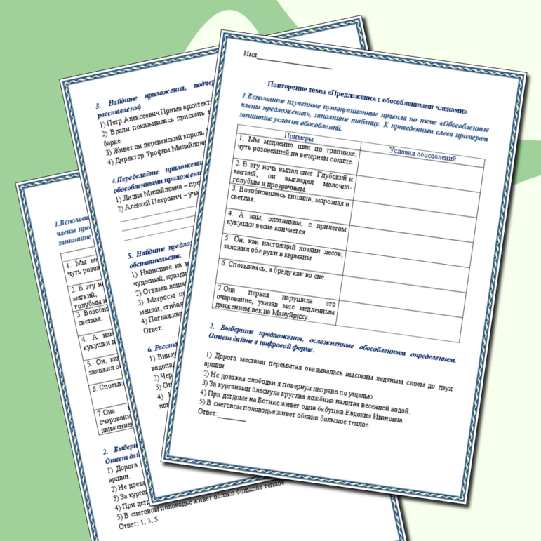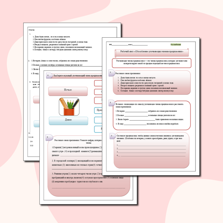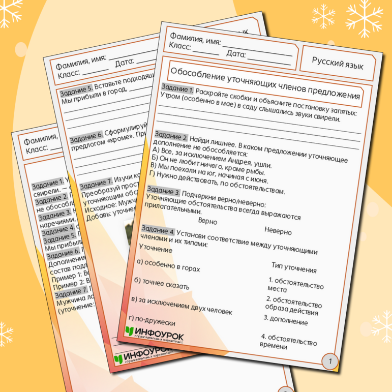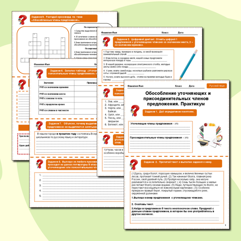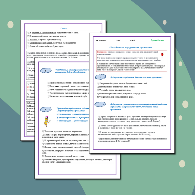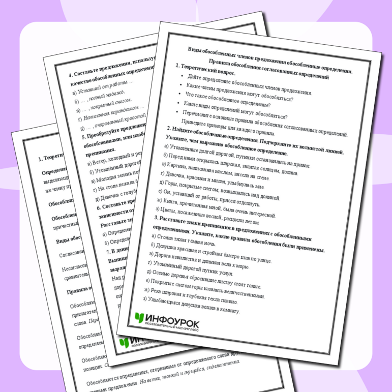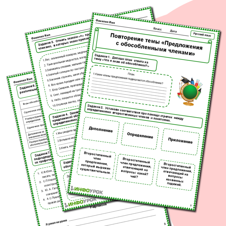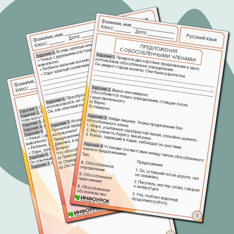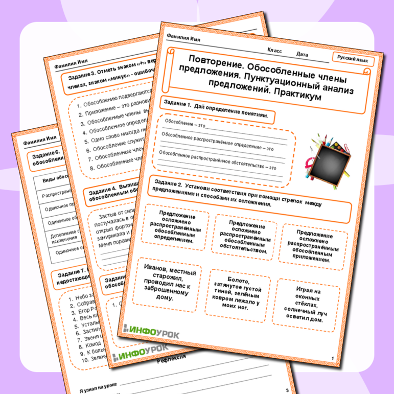 Рабочий лист обособление 8 класс класс