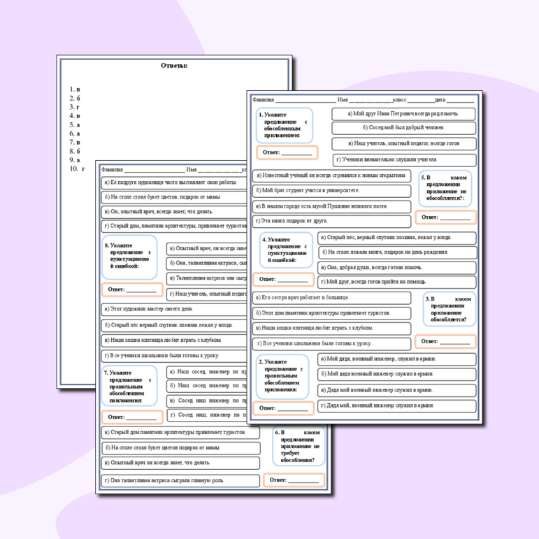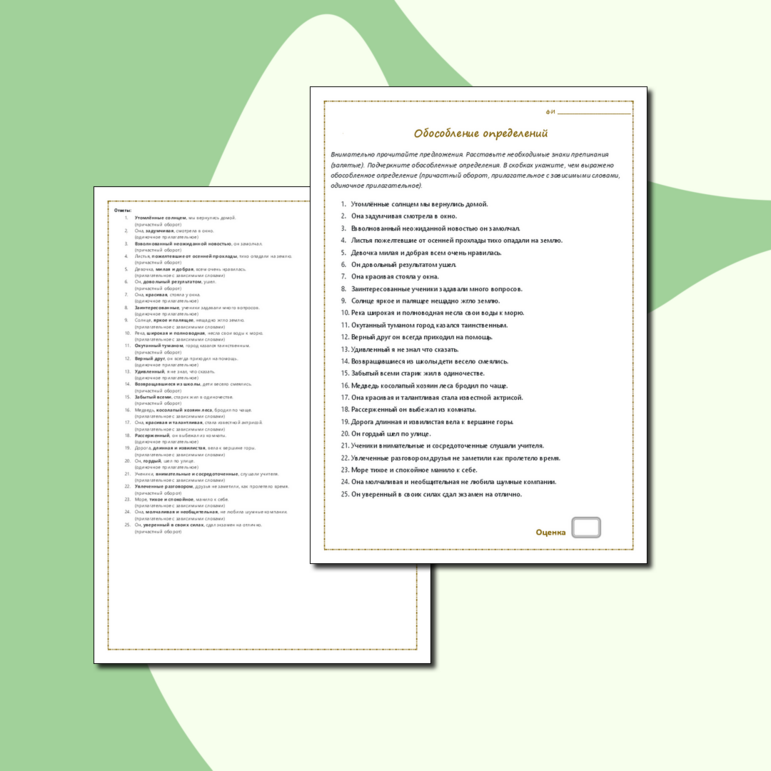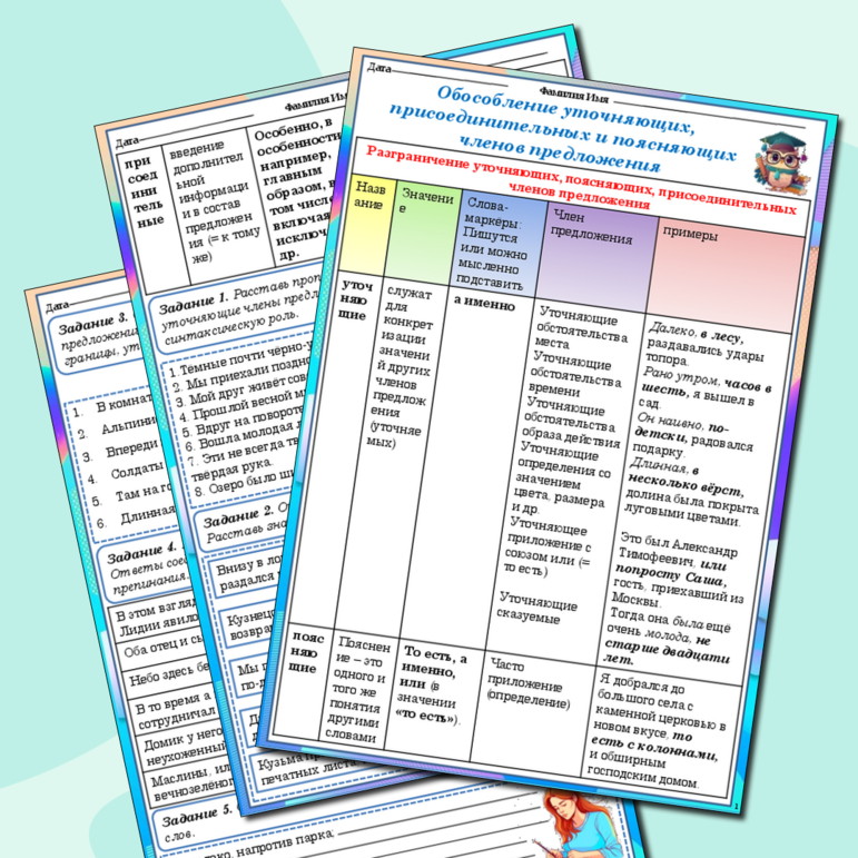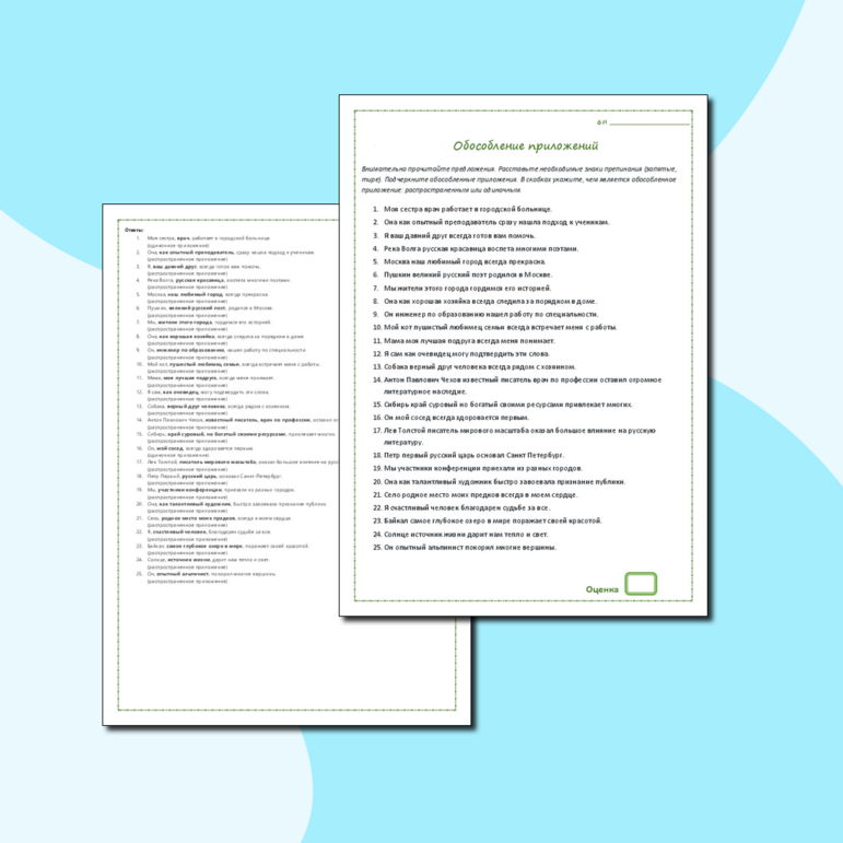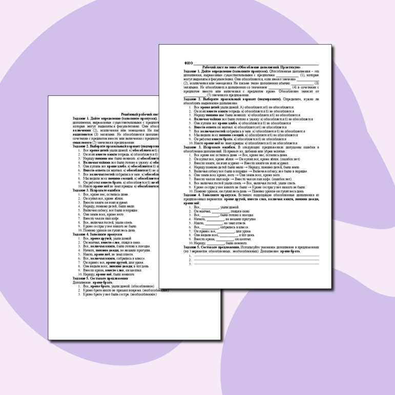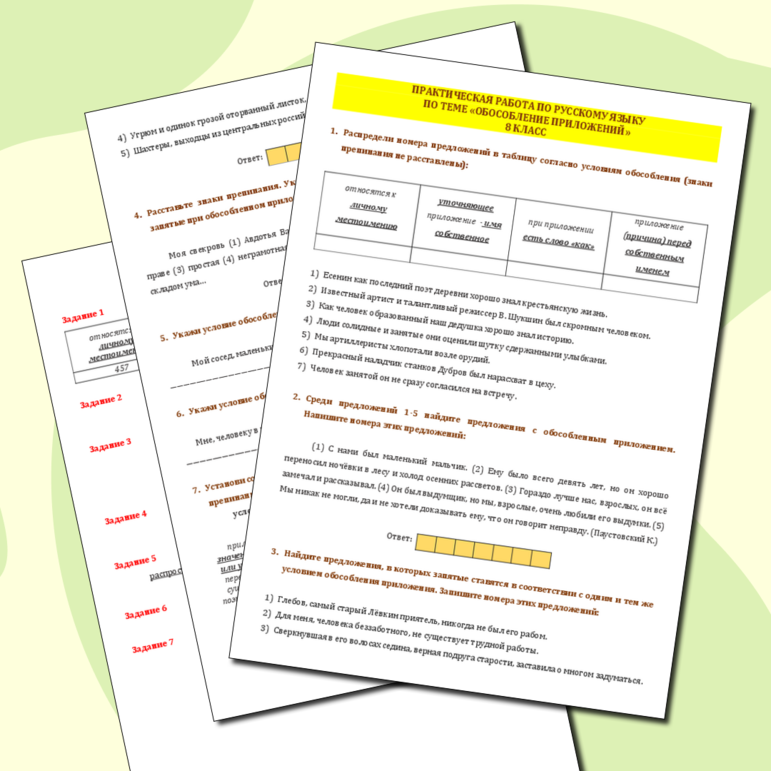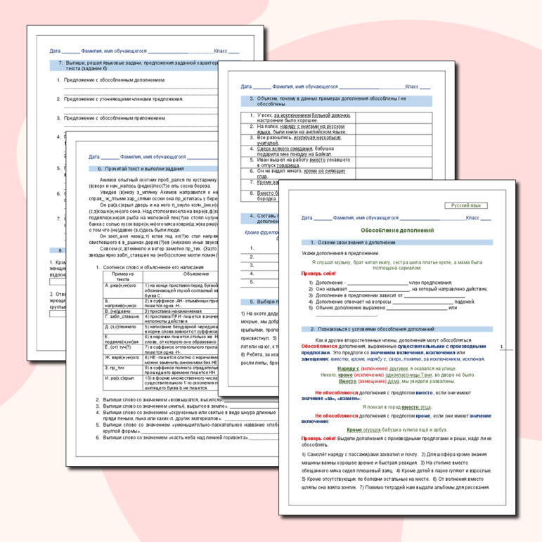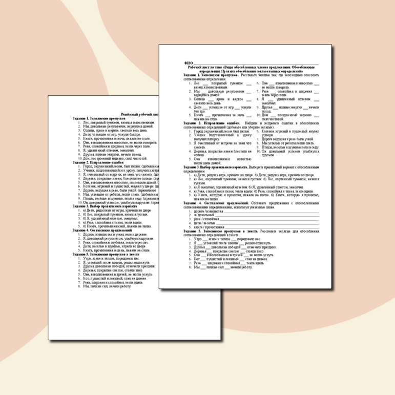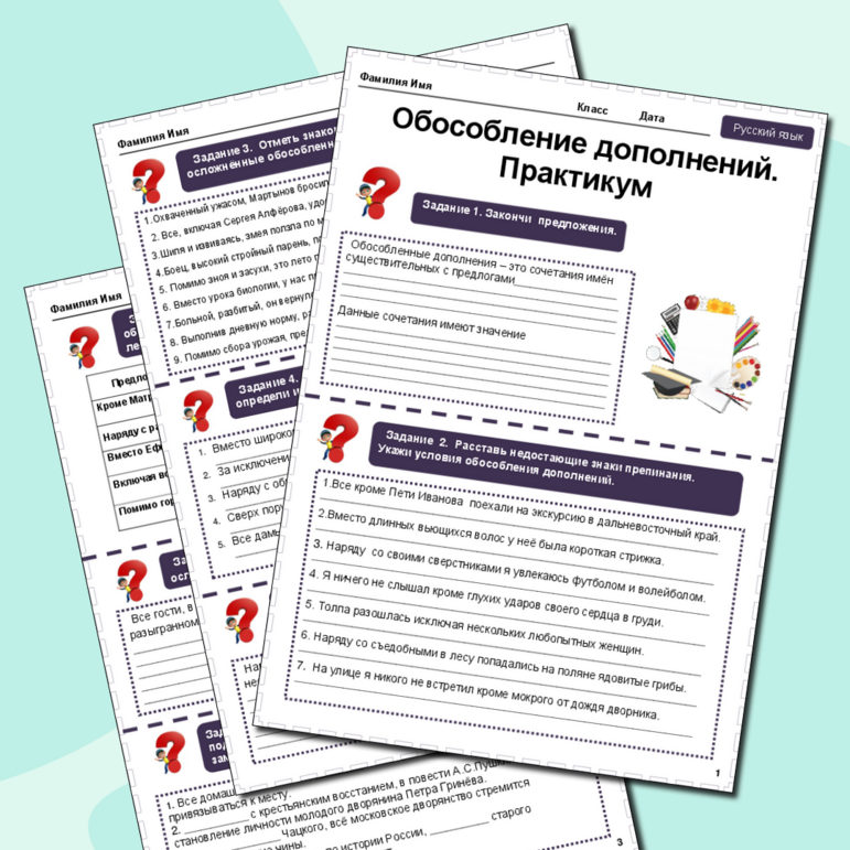Рабочий лист обособление 8 класс класс