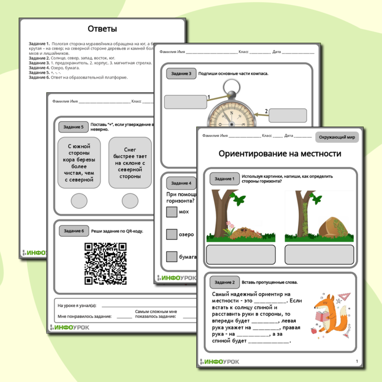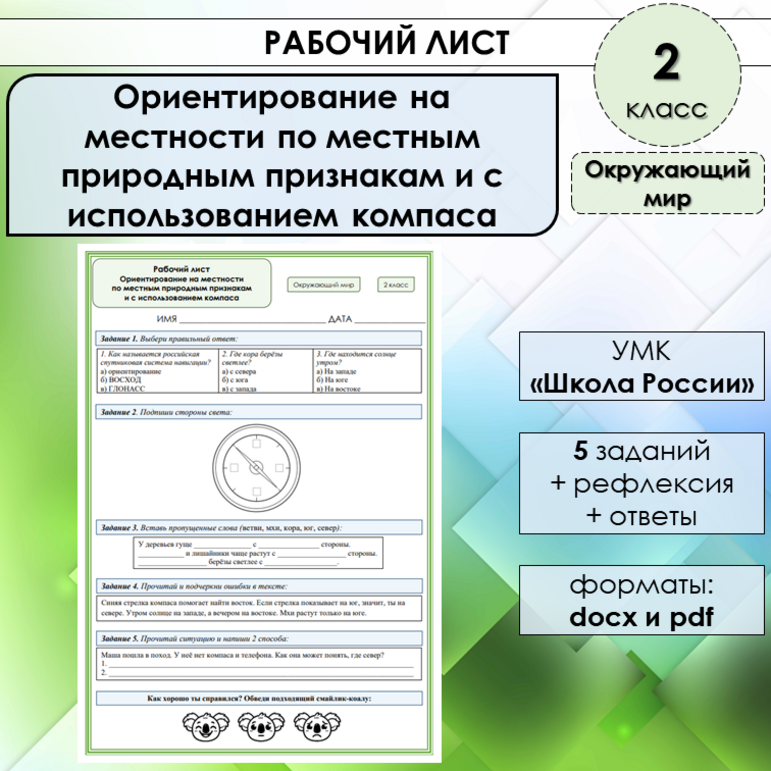 Рабочий лист ориентирование компас