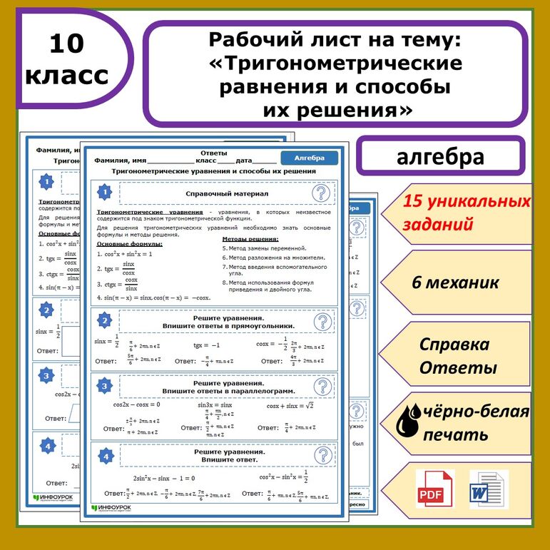 Рабочий лист по математике 10 класс 143 фотографий