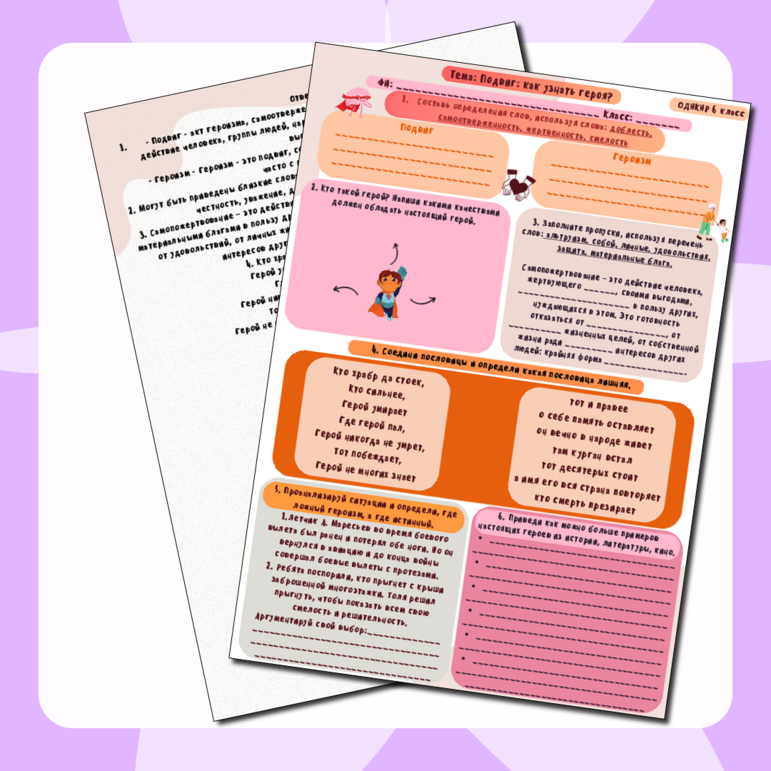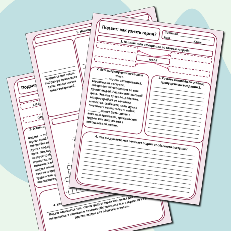 Рабочий лист по теме подвиг 125 фото