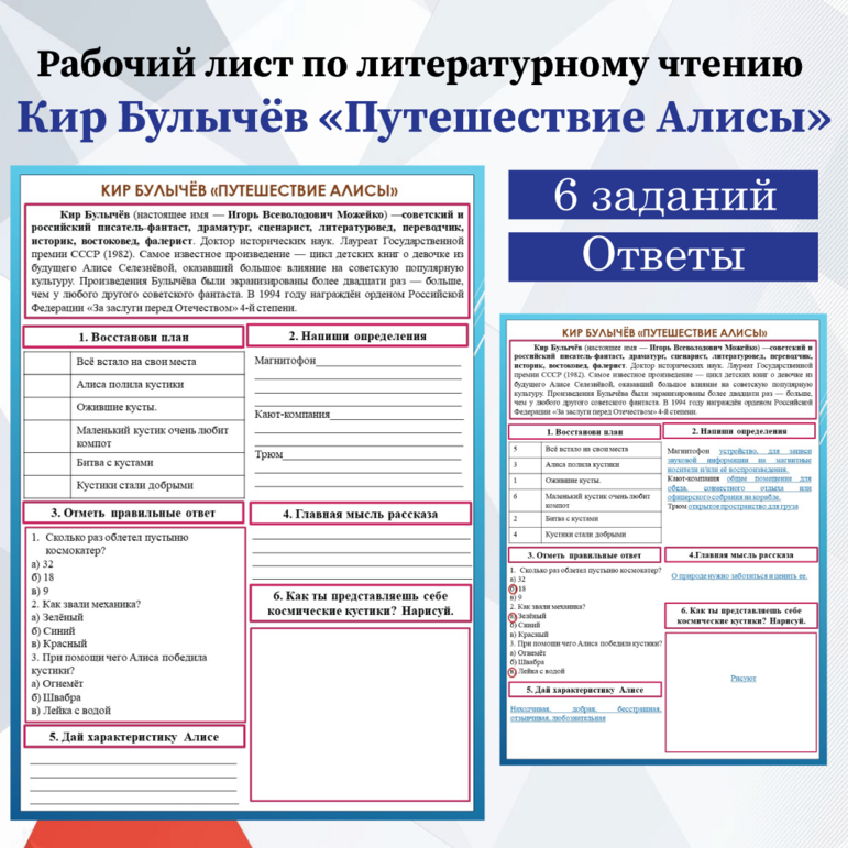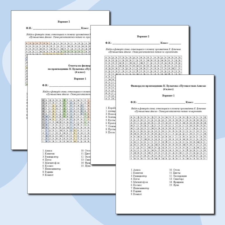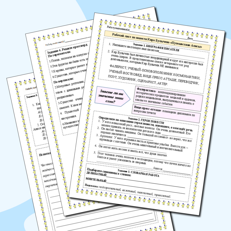 Рабочий лист приключения алисы
