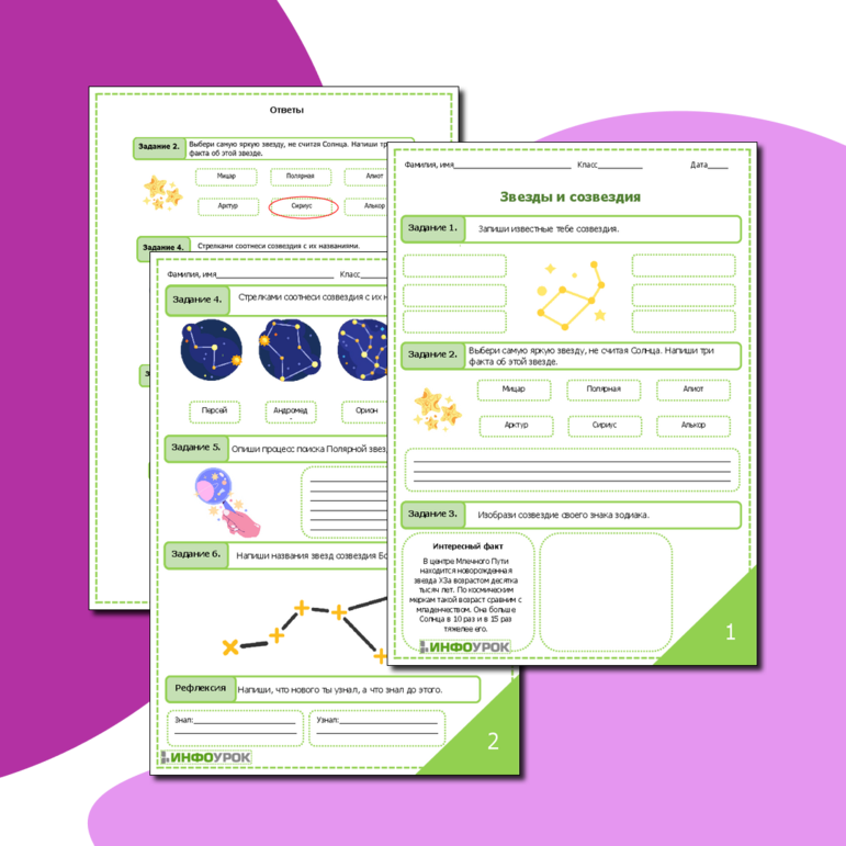 Рабочий лист созвездия планеты 2 класс