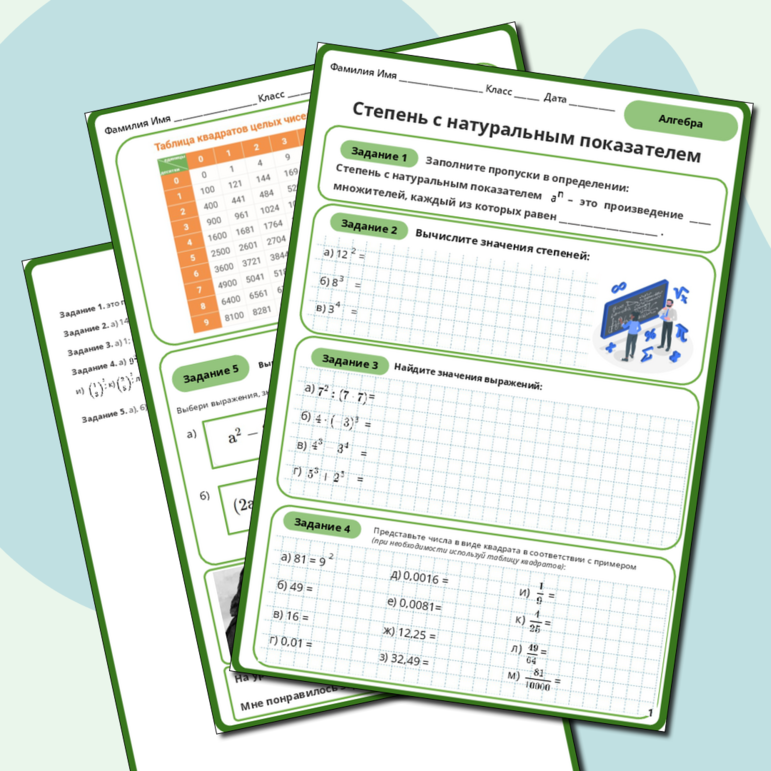 Рабочий лист степень с целым показателем