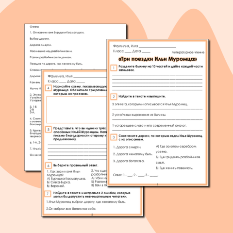 Рабочий лист три поездки ильи муромца