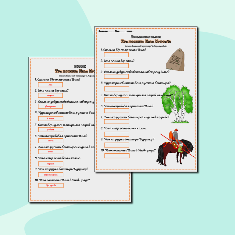 Рабочий лист три поездки ильи муромца 107 фотографий
