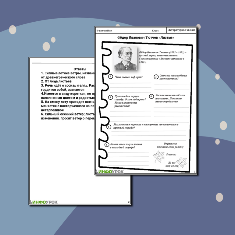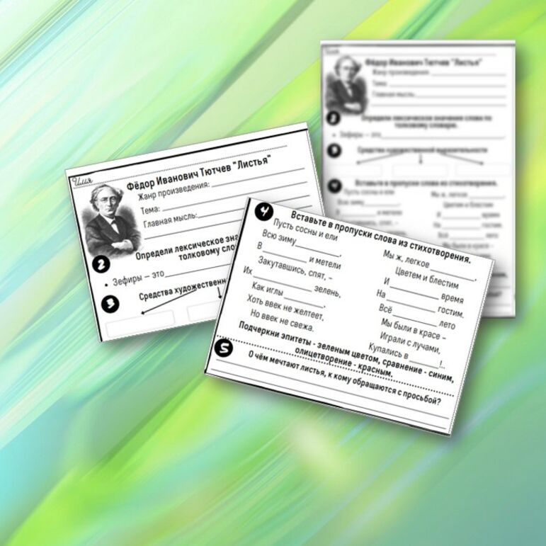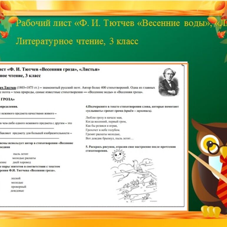 Рабочий лист тютчев листья 3 класс ответы