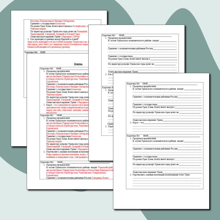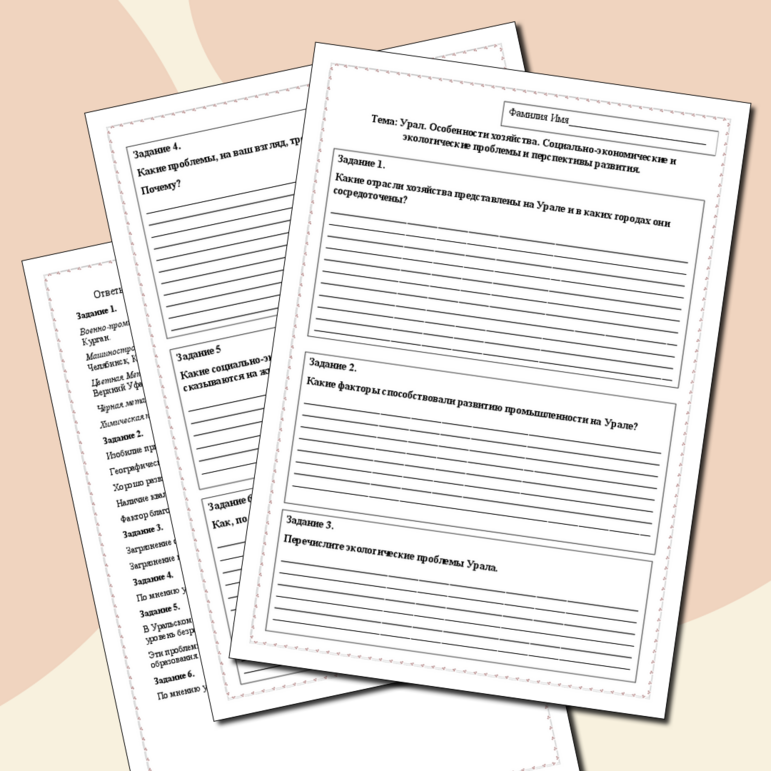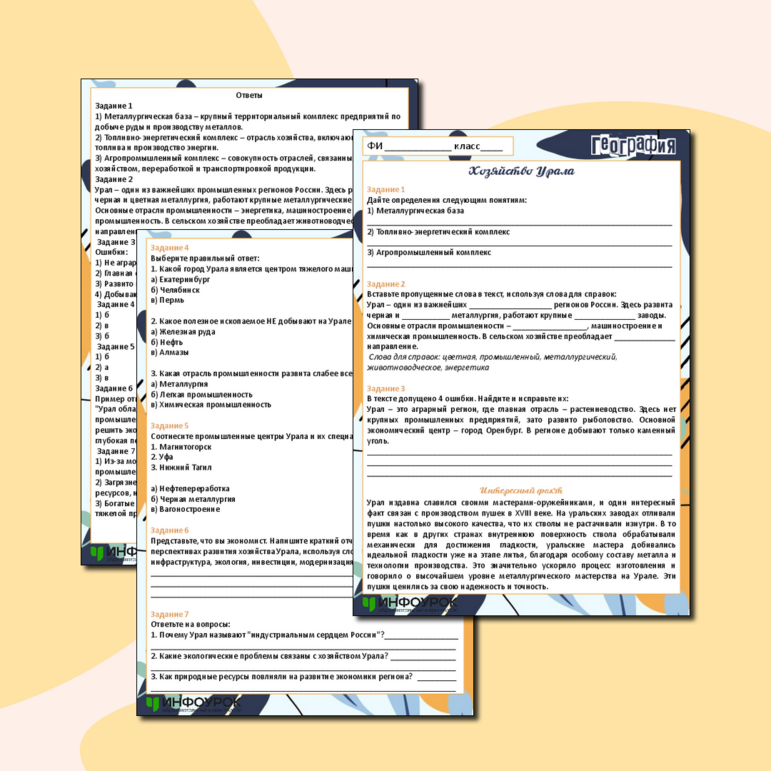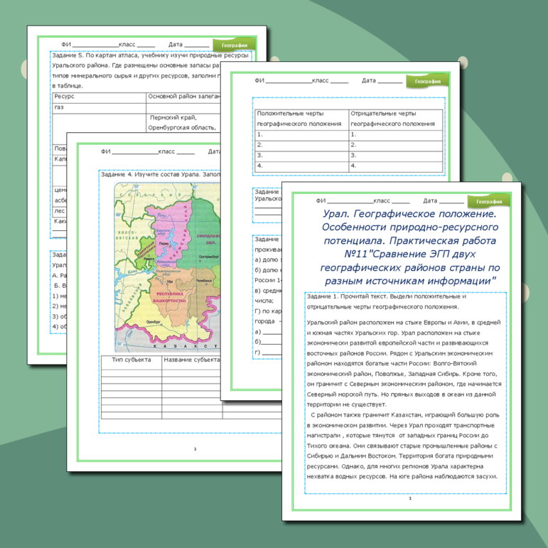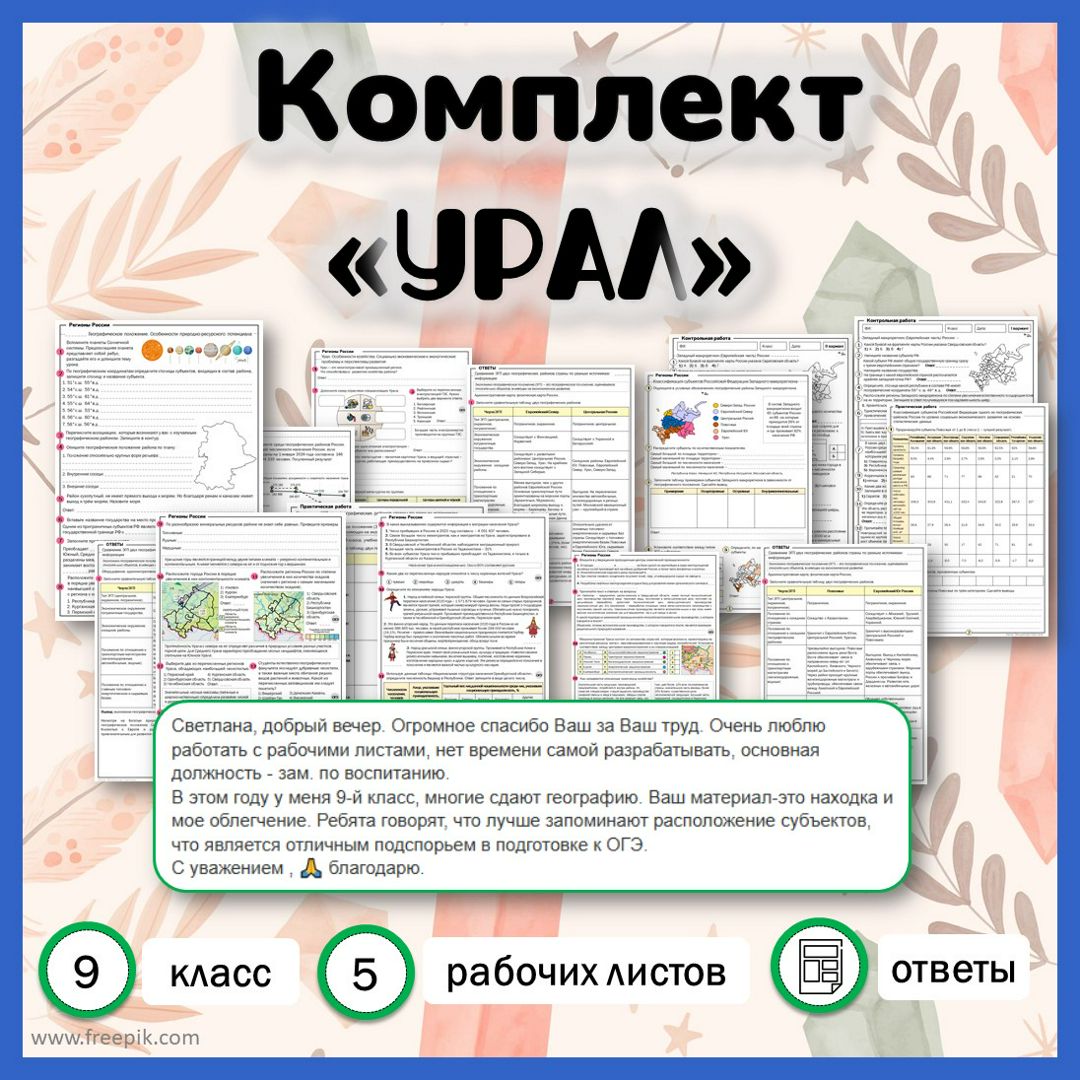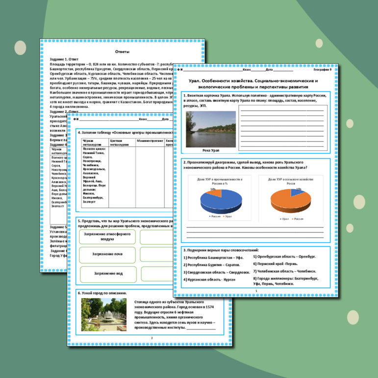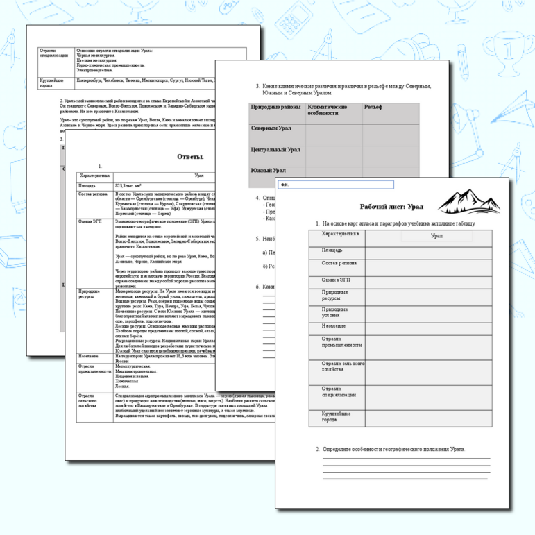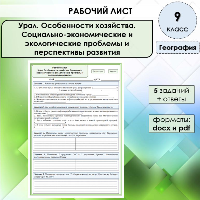 Рабочий лист урал 9 класс