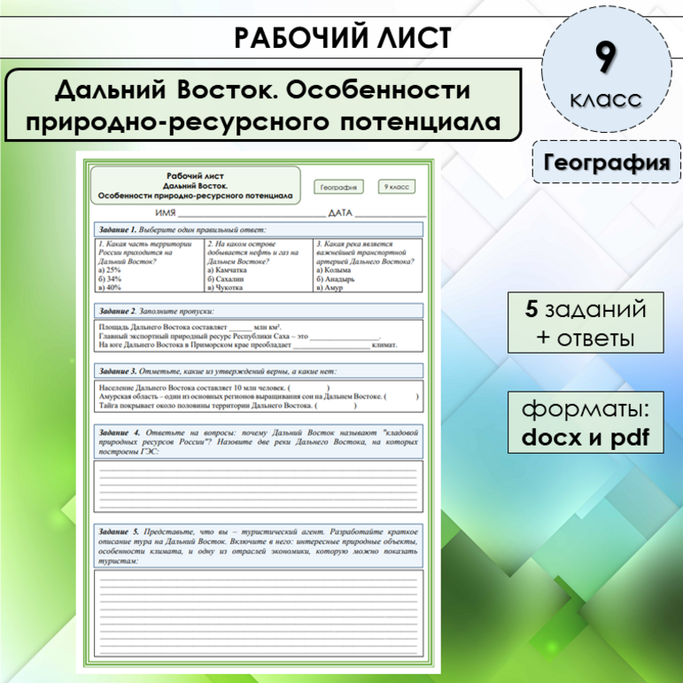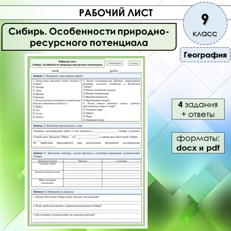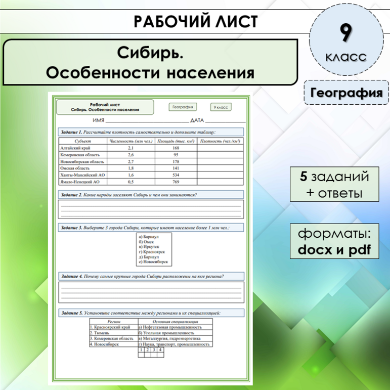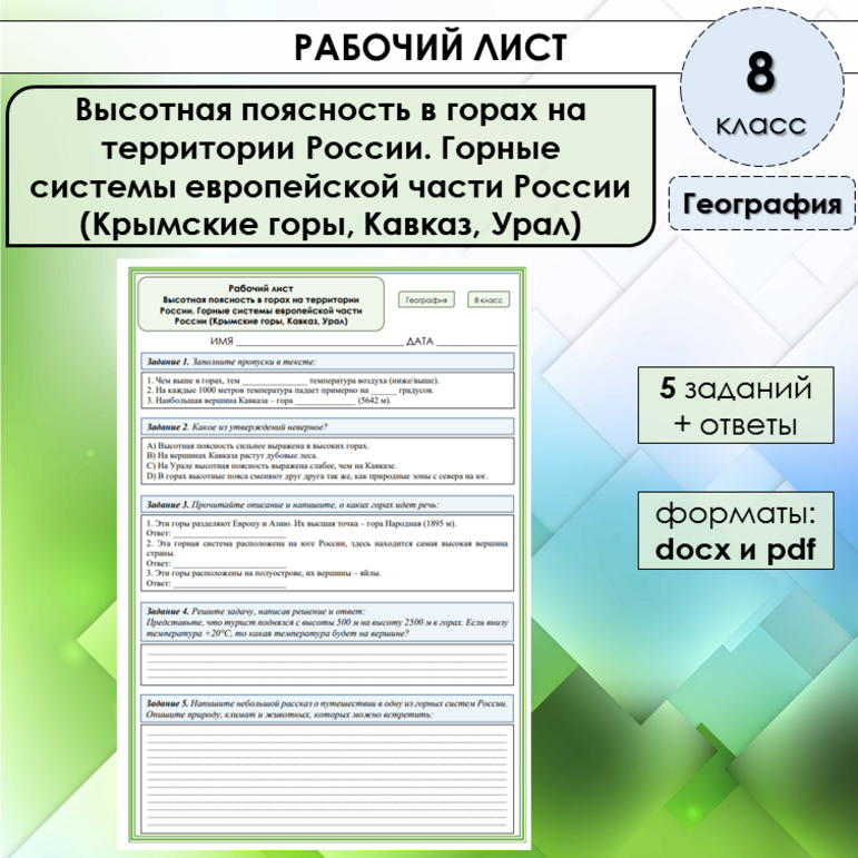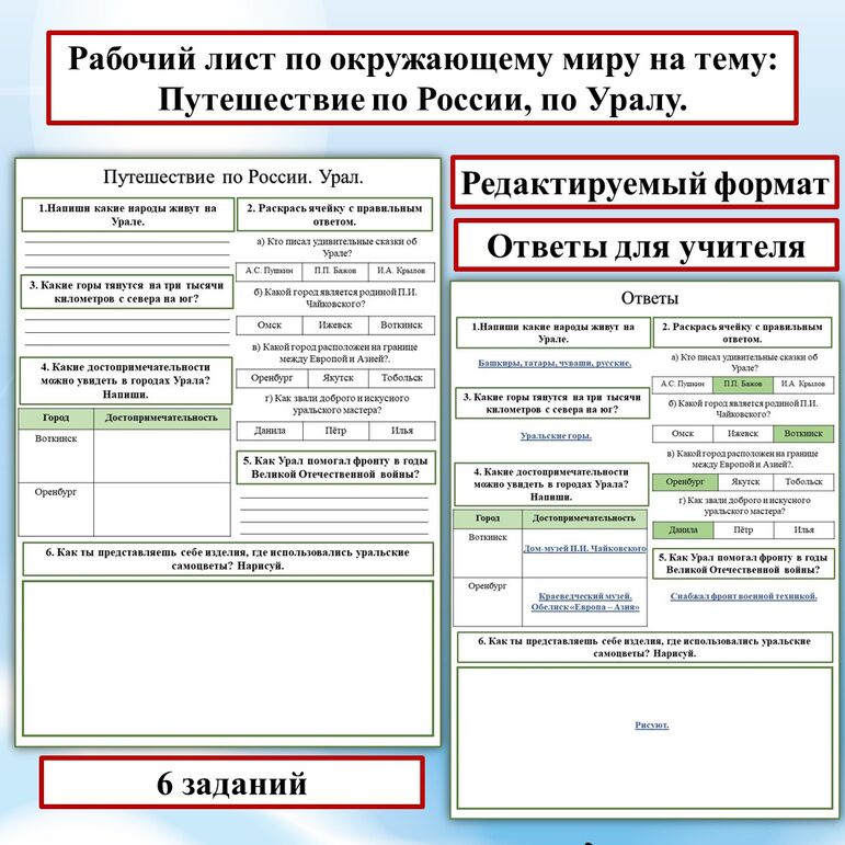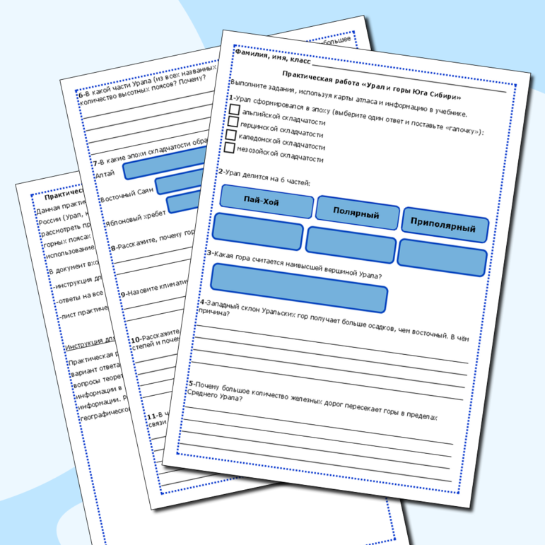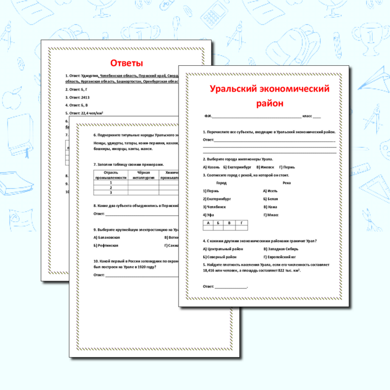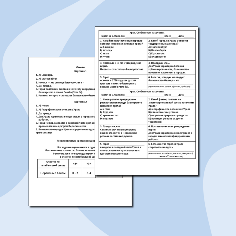 Рабочий лист урал 9 класс