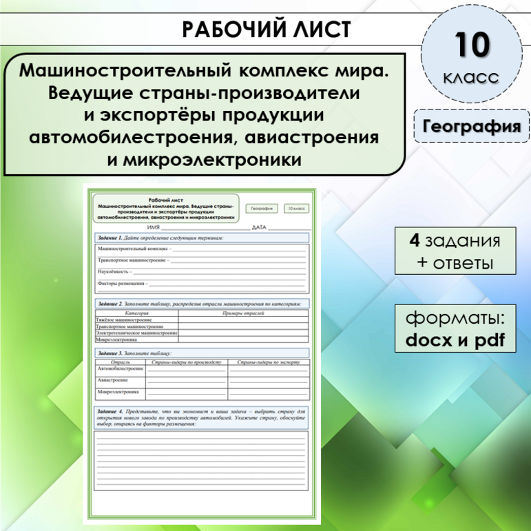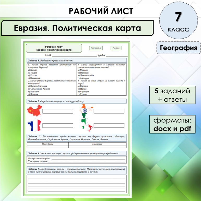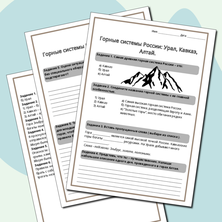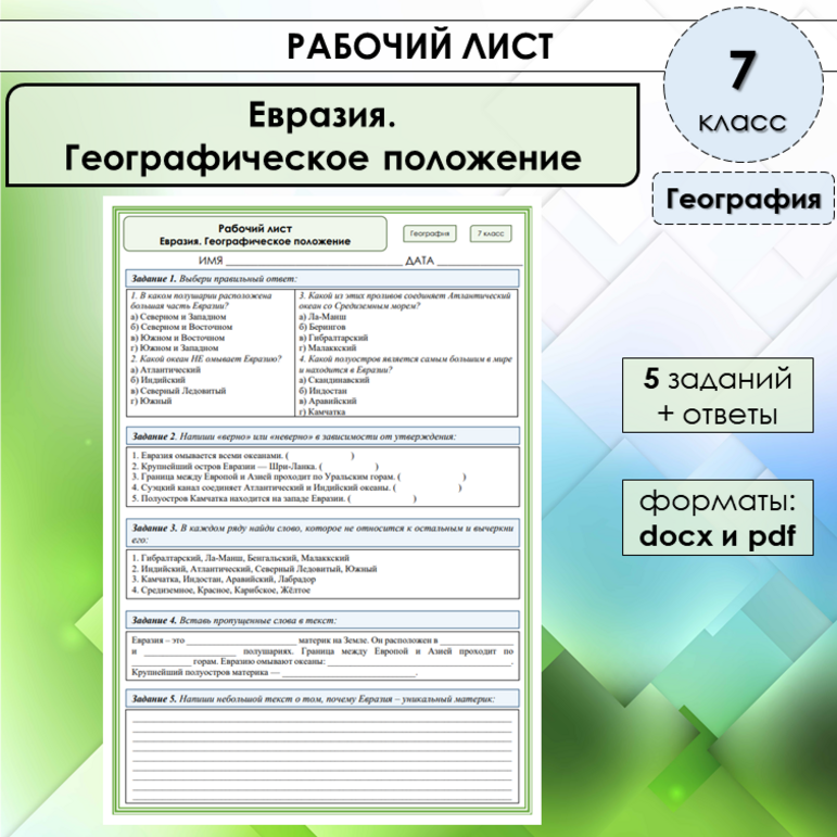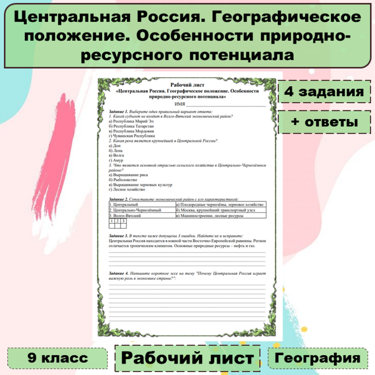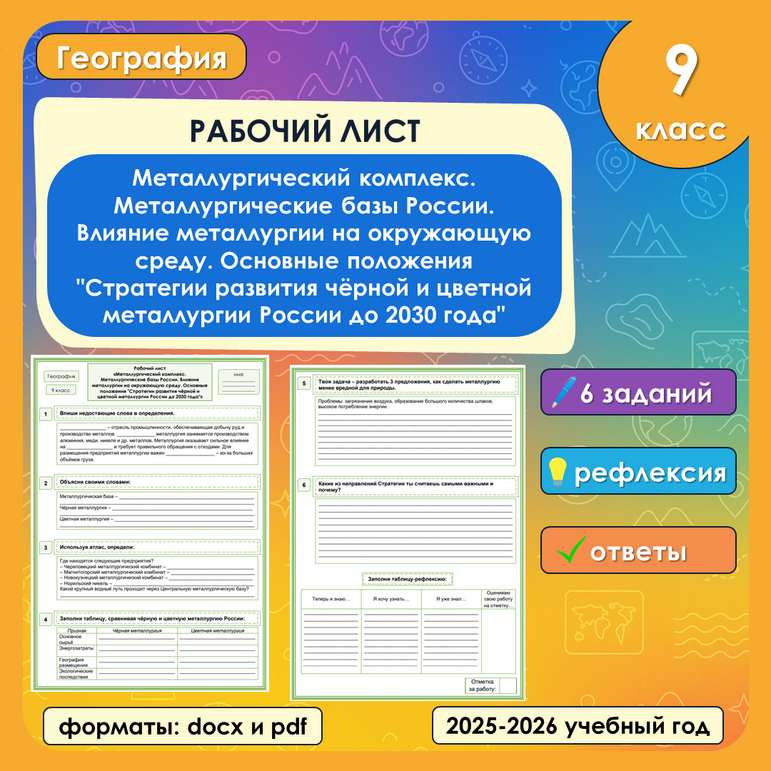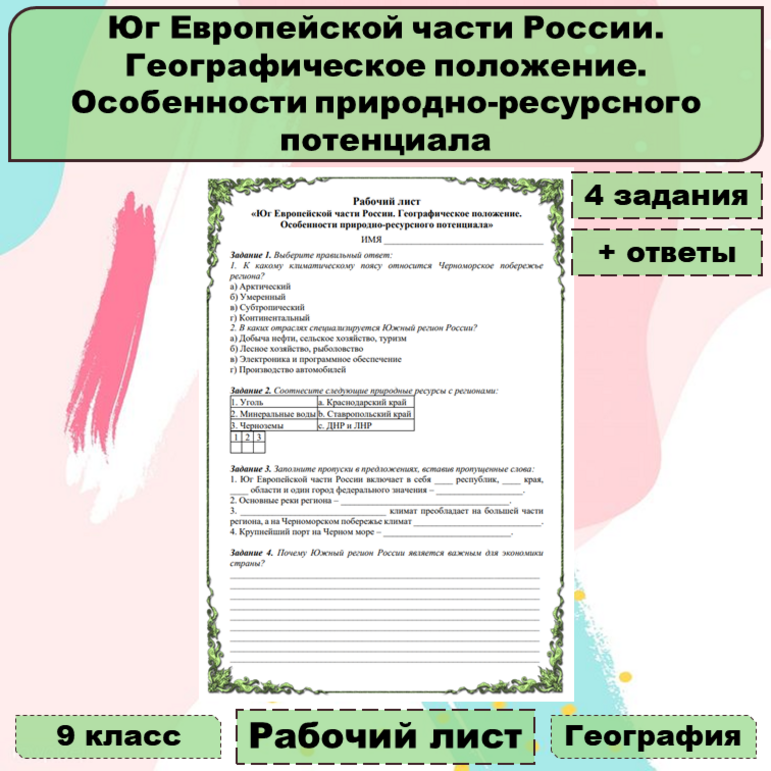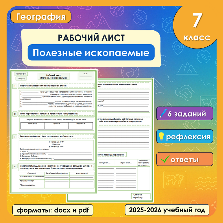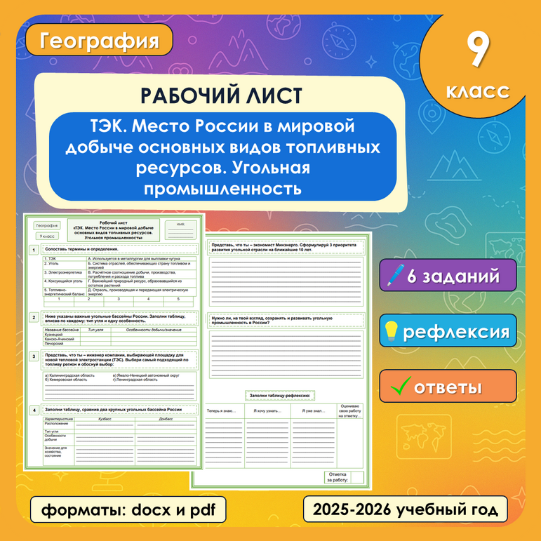 Рабочий лист урал 9 класс