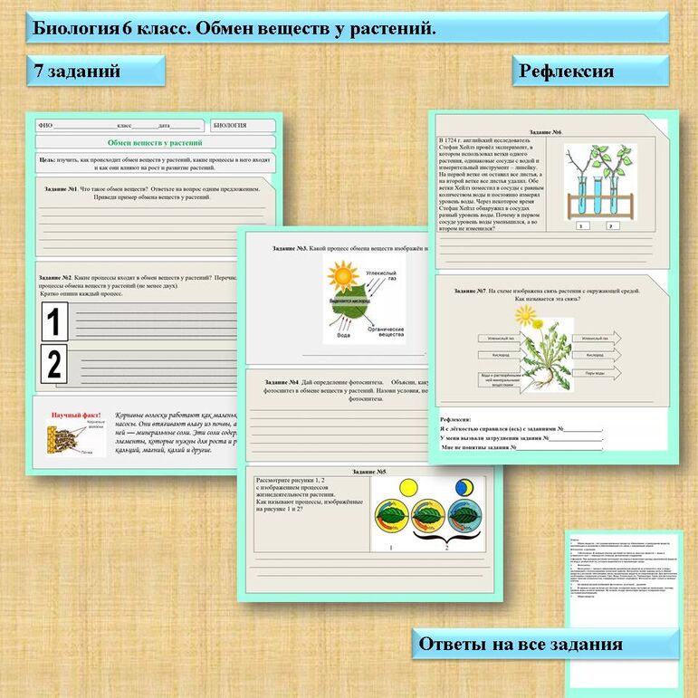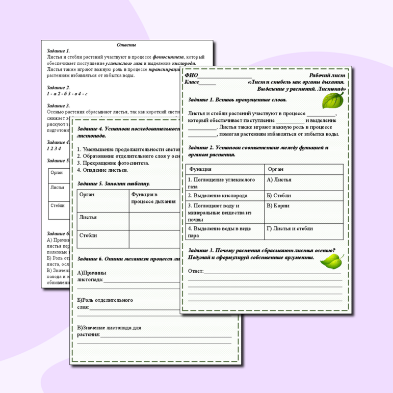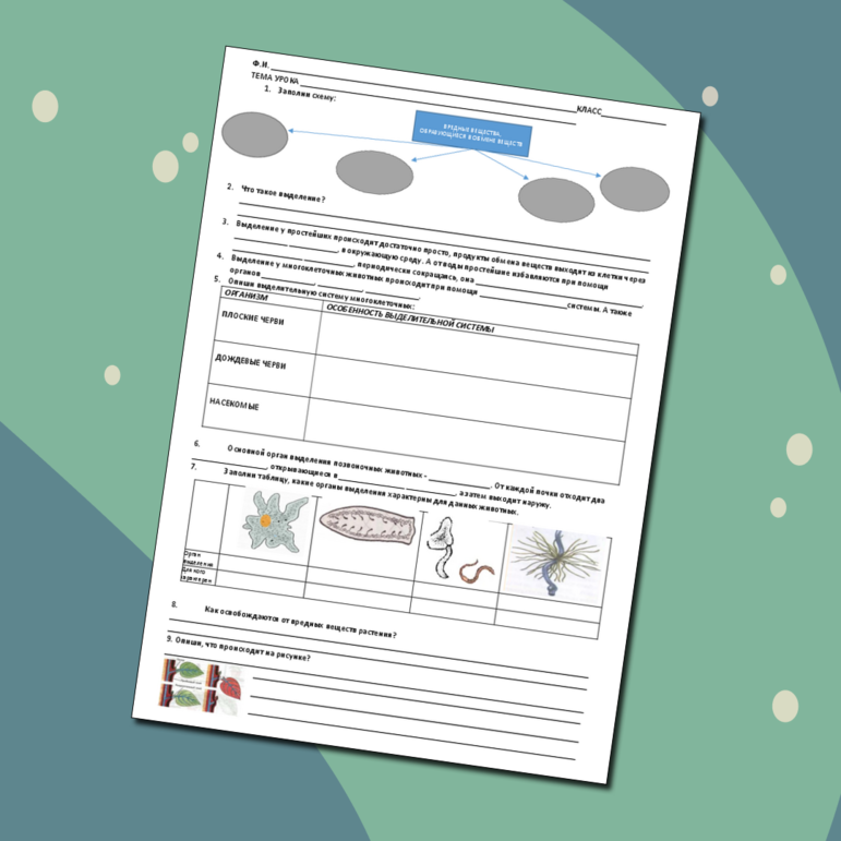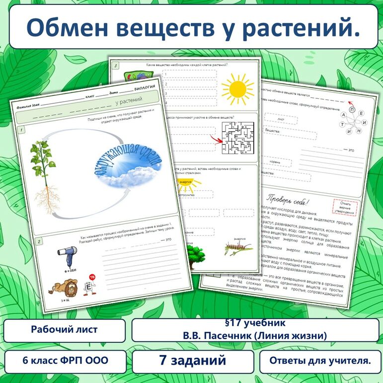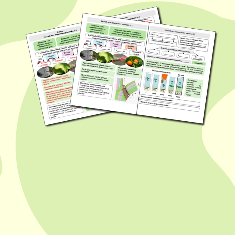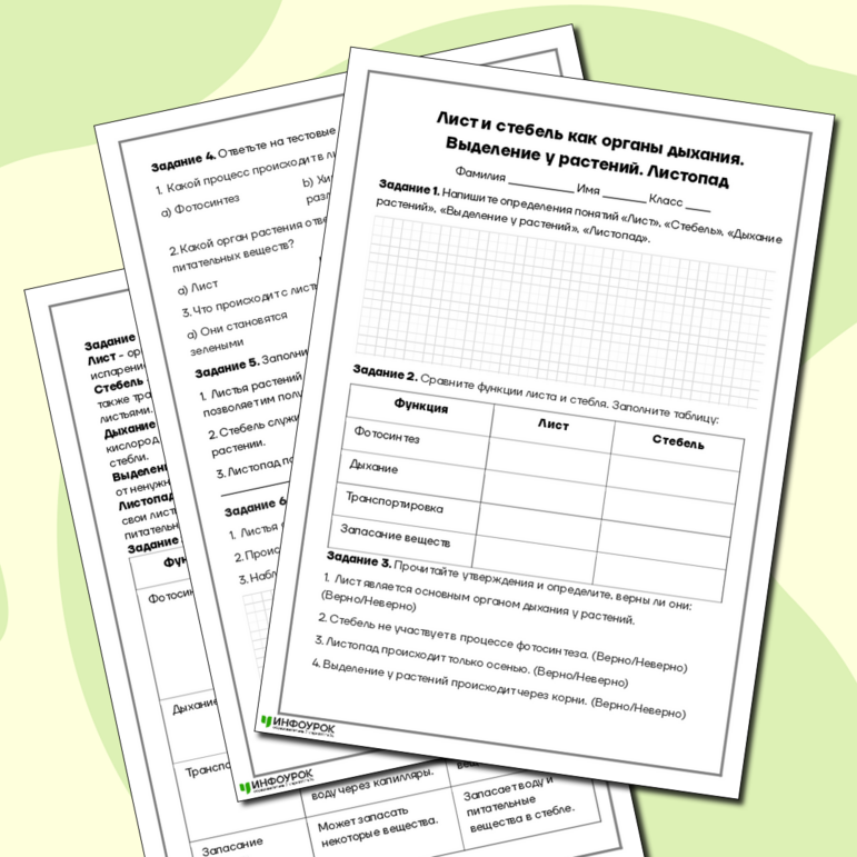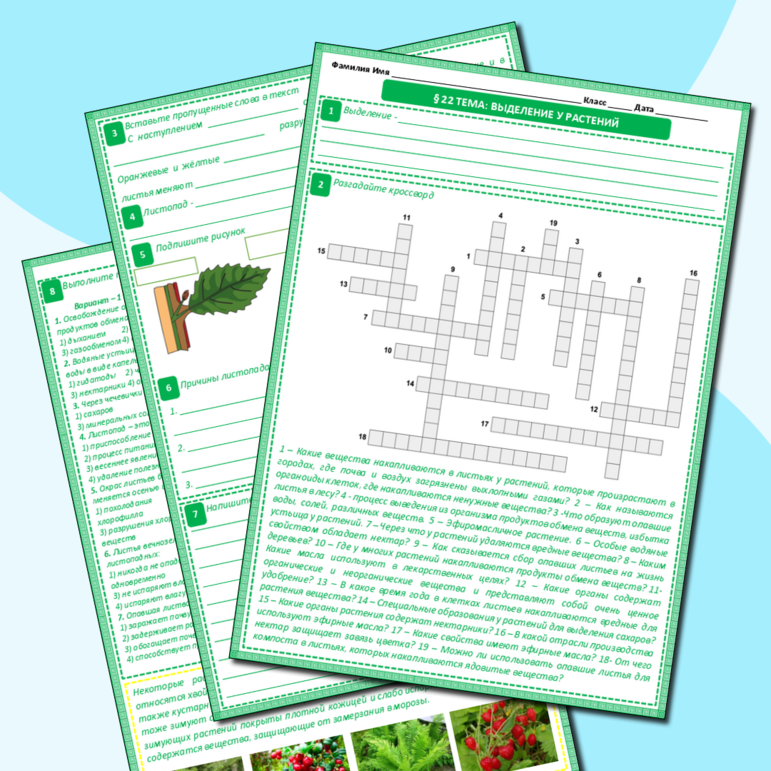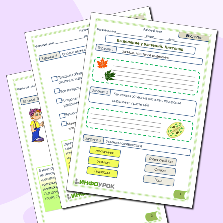 Рабочий лист выделение у растений