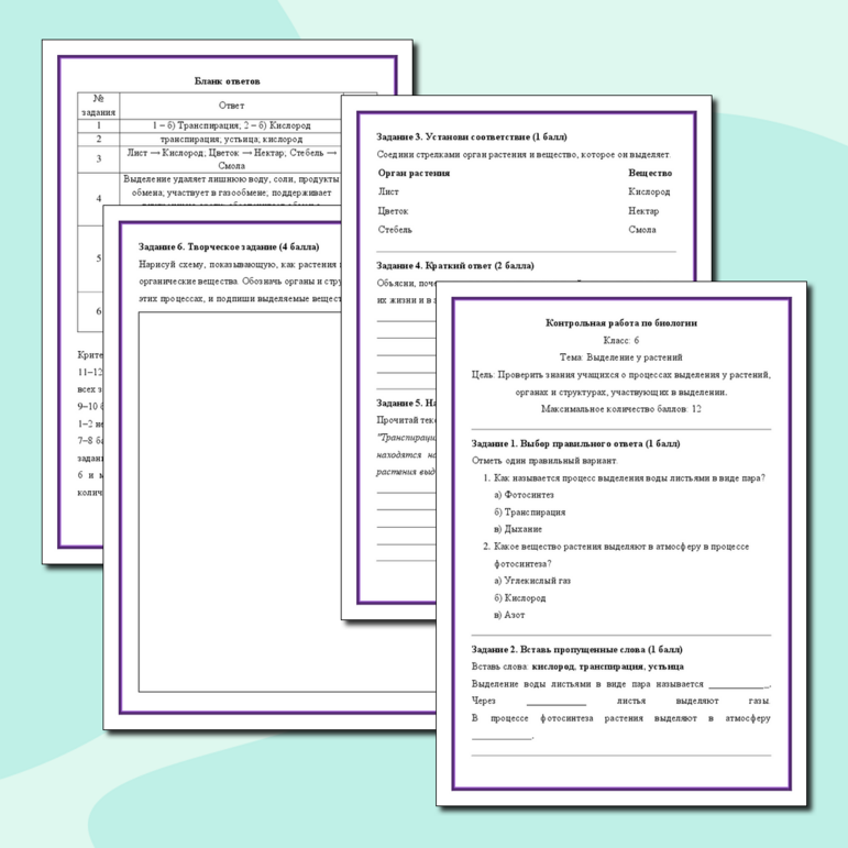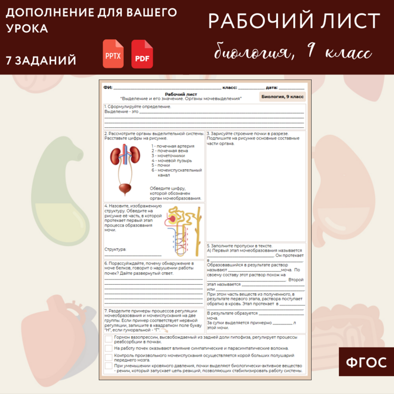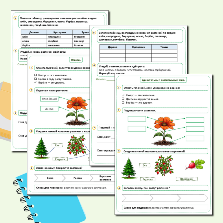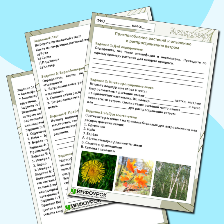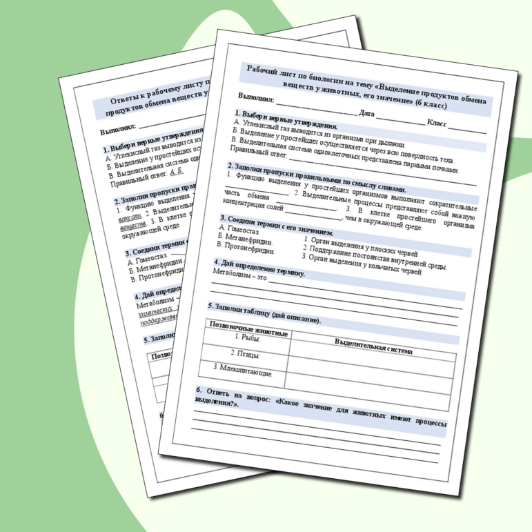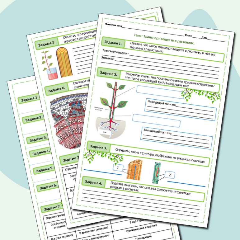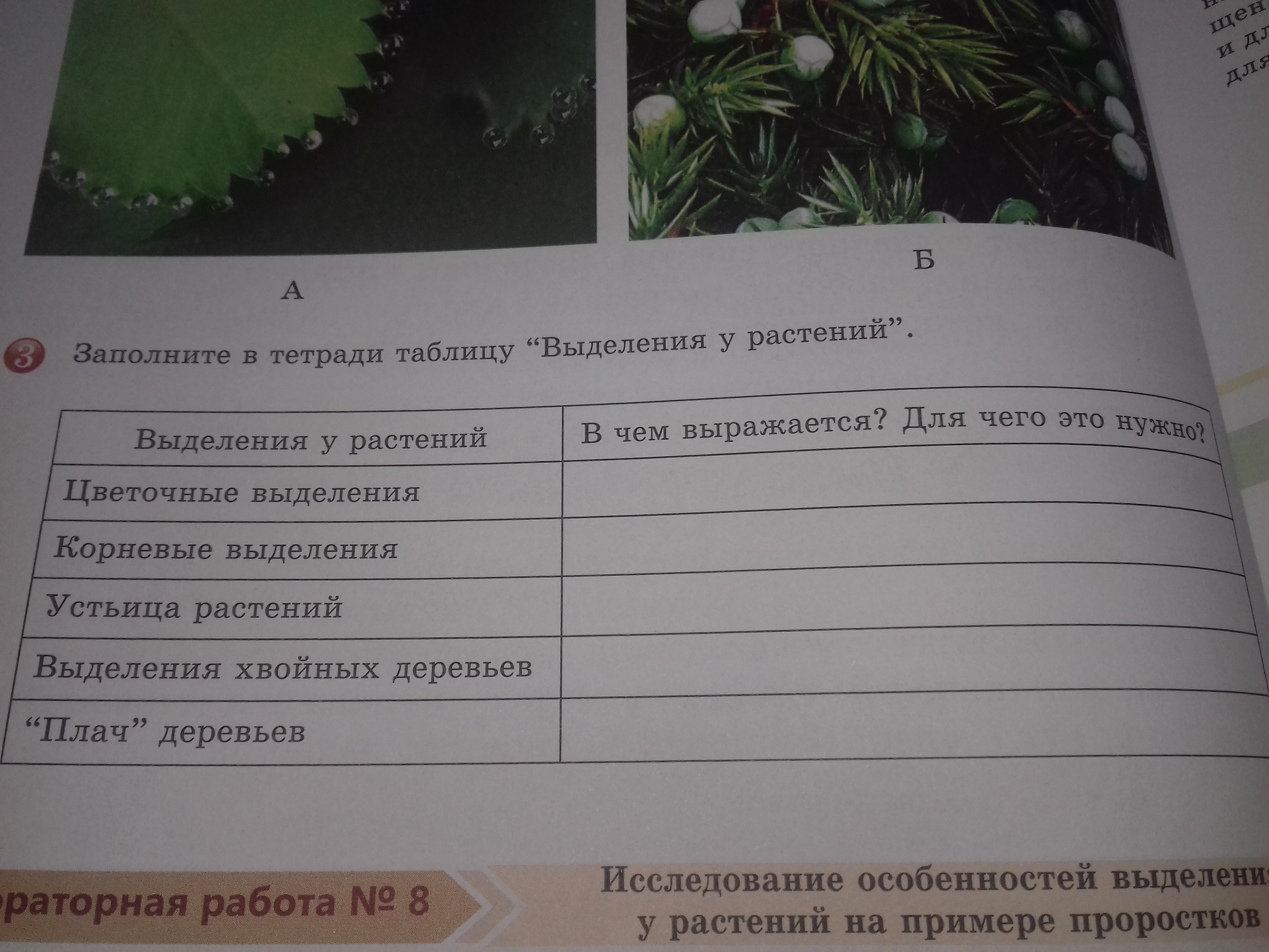 Рабочий лист выделение у растений