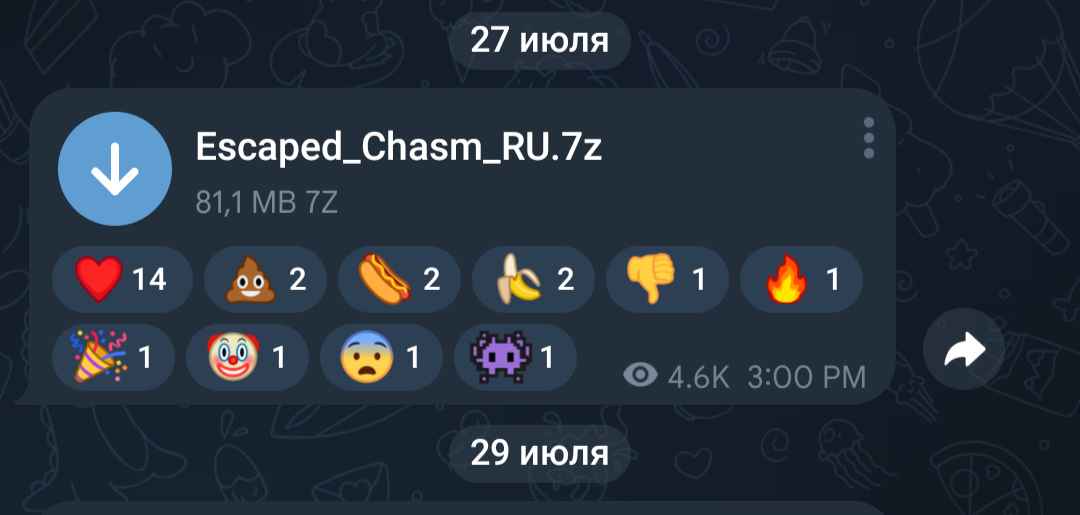 - В Telegram перейдите к файлу который вы собираетесь сохранить (если это игра с нашего канала, то обычно это кнопка «Скачать»).