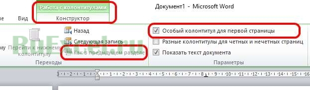 Работа с колонтитулами в документе