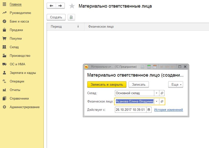 Работа с материально ответственными лицами