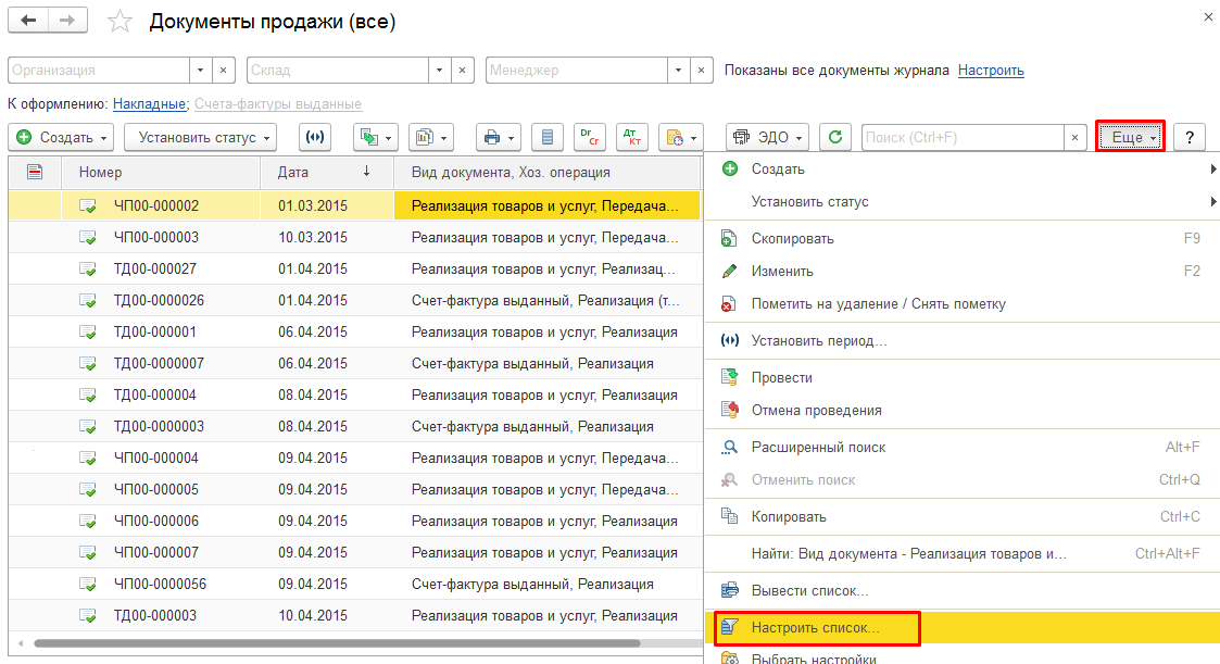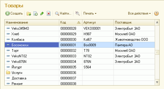 Работа со списком 1с