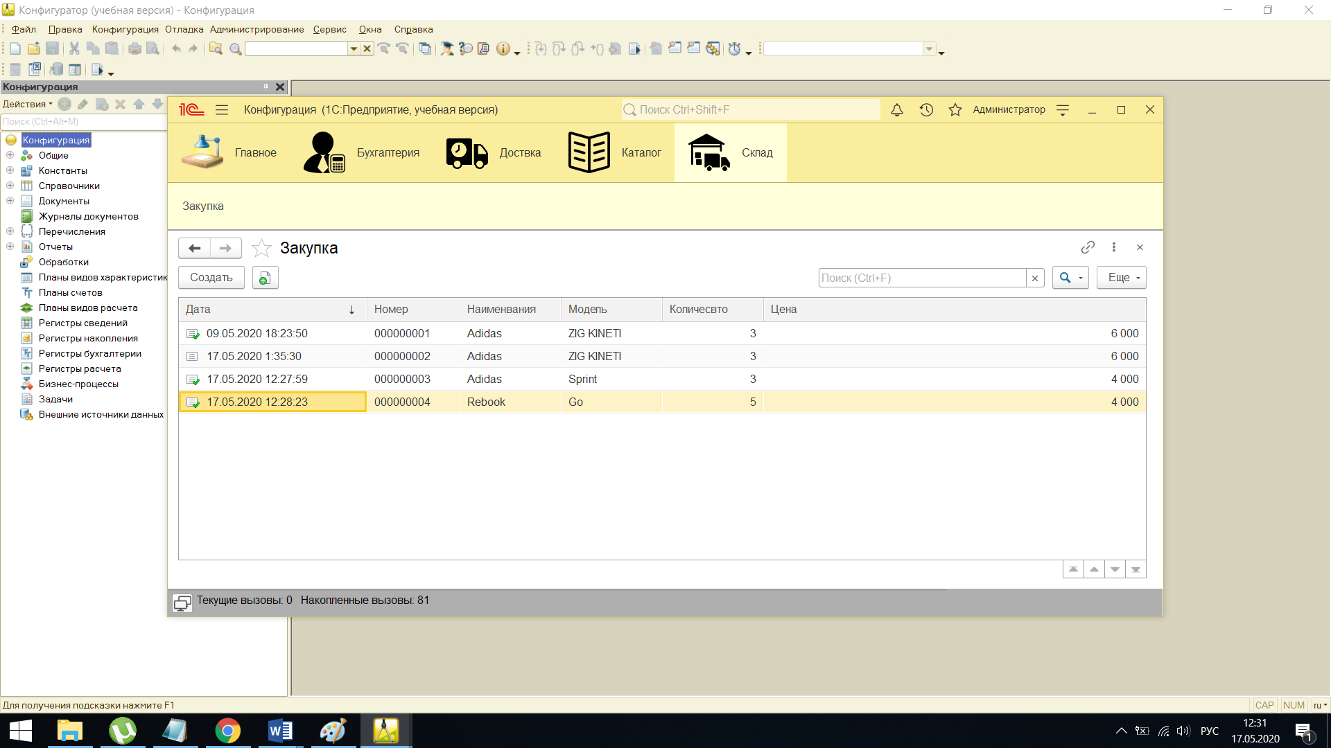 Работа в 10 1с