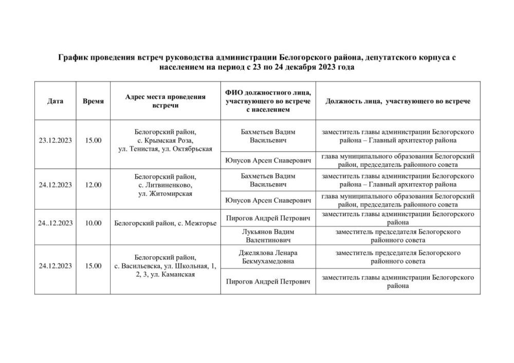 Работа в белогорском районе