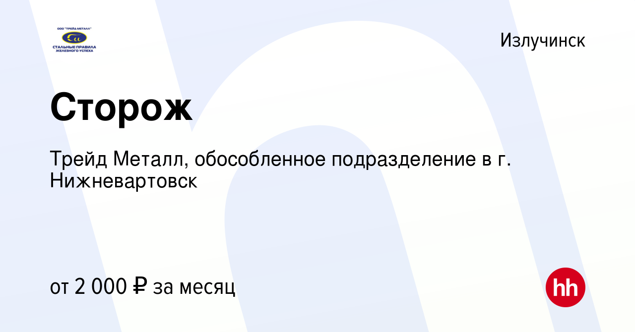 Работа вартовск