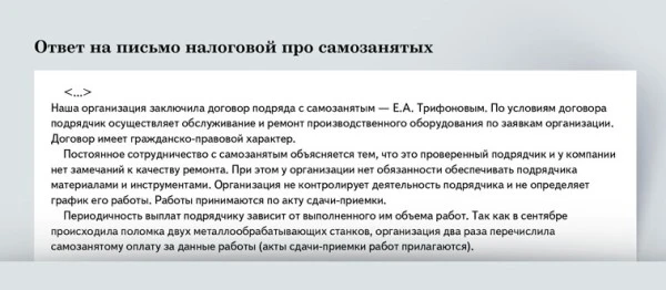 Работа юрлица с самозанятым