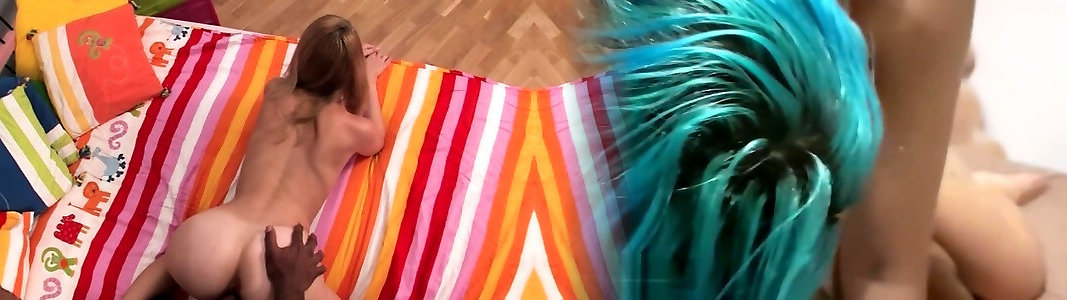 Ebenholz teen hilft blonde Freundin zu zertrümmern als ein Schwanz zu Hause