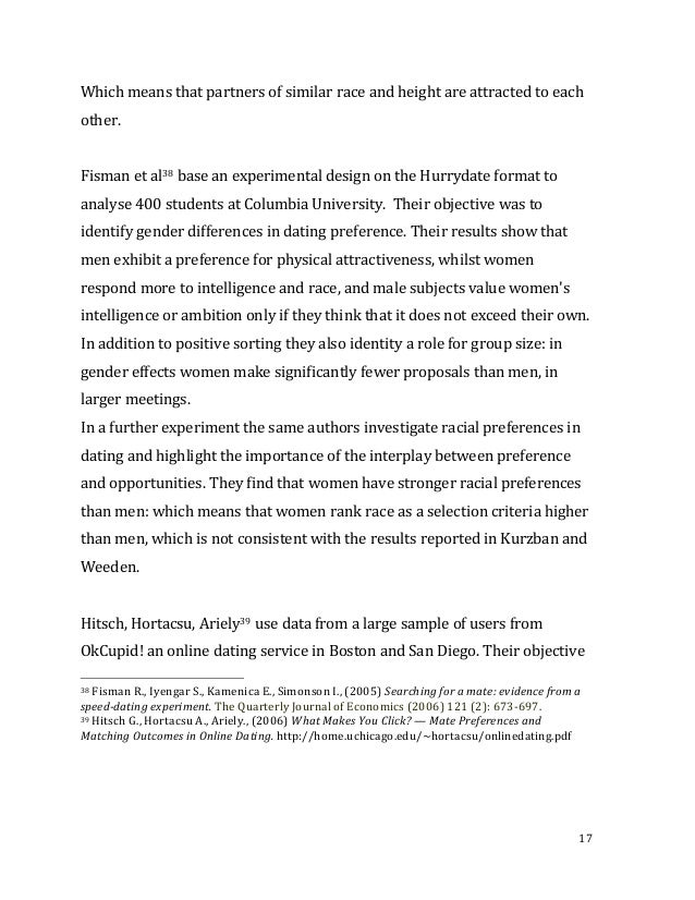 Racial Preferences in Dating Raymond Fisman , Sheena S . Iyengar, Emir Kamenica, & Itamar Simonson First Draft: August 15, 2004 This Draft: June 28, 2006 Abstract We examine racial preferences in dating using data from a Speed Dating experiment . In contrast to previous studies, our methodology allows us to directly observe individual