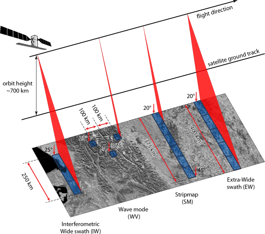 Супутникові знімки бувають оптичними і радіолокаційними. Тип поділяється на підкатегорії в залежності від апертури, орбіти і діапазонів. Пара супутників Sentinel 1 програми ESA Copernicus, S1A і S1B, дають загальний середній час відвідування 1,5 дня.