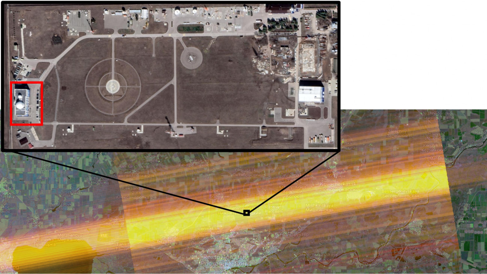 Коли батареї «Patriot » вмикають радар то супутники Sentinel-1 вловлюють як відлуння власного імпульсу радіохвиль, так і потужний викид радіохвиль з радарів, що знаходяться на Землі. Це з'являється у вигляді інтерференційної смуги, перпендикулярної орбітальному шляху супутника.