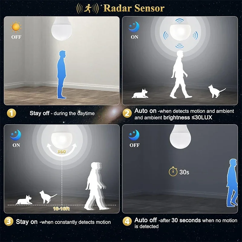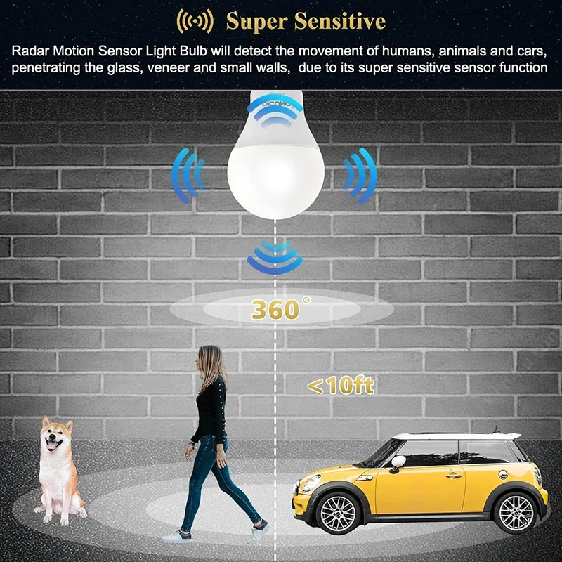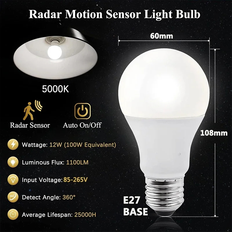 olVkZgMCHere you can buy Radar Motion Sensor LED Bulb Light Control Garage Lamp E26/27 Cold White For Stair Pathway Warehouse Graden 85-265V with free delivery to your post office.