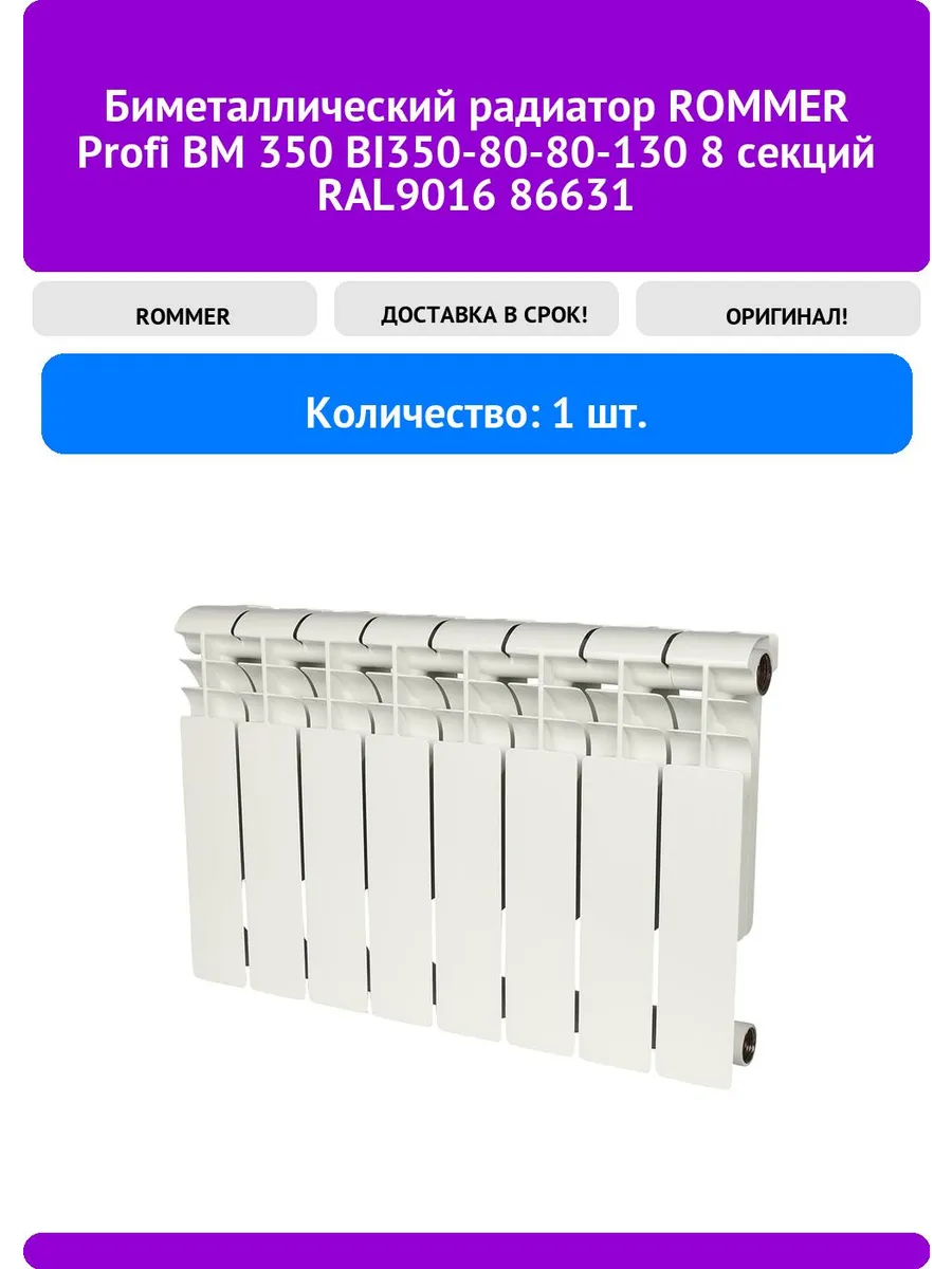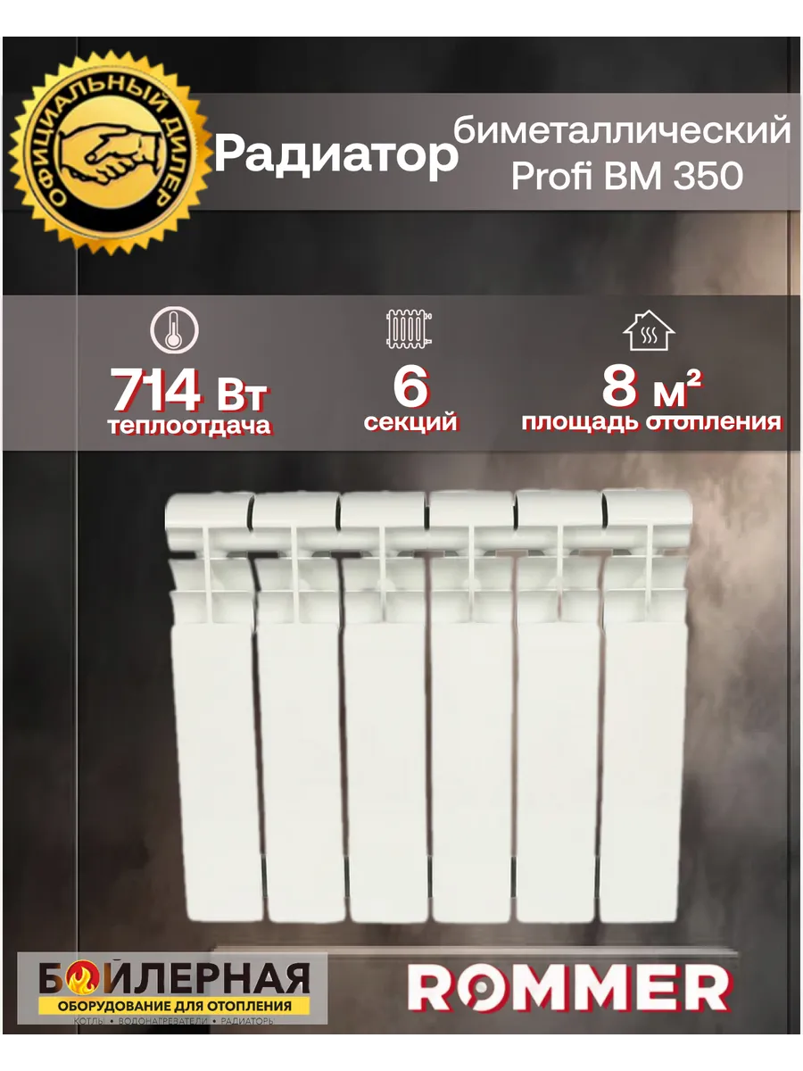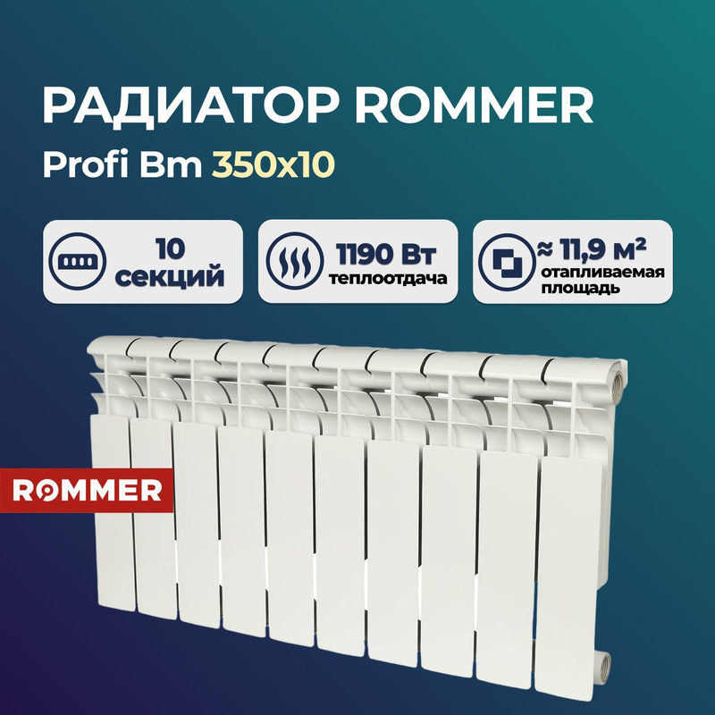 Радиатор биметаллический rommer profi bm 350 104 фото
