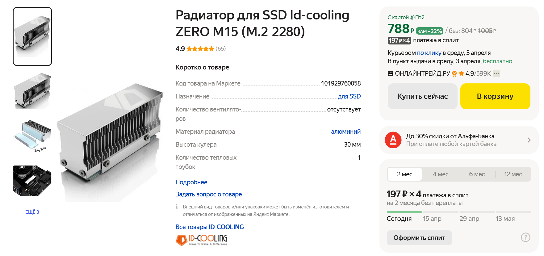 Радиатор для ssd id cooling zero