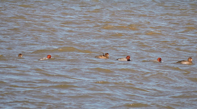 This raft of Redheads were resting in this reed patch to keep the wind from blowing them about.