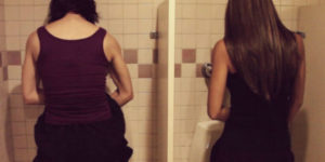 Una ragazza entra nel bagno degli uomini per fare pipì . . .