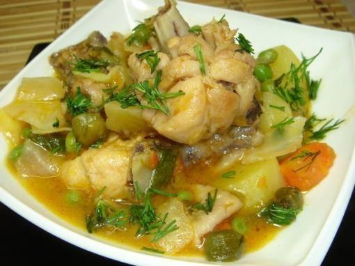Овощное рагу с курицей, картошкой и капустой