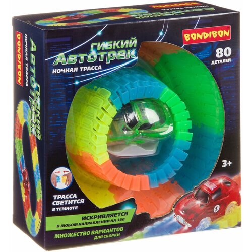 Une piste automobile flexible est un champ infini pour l'imagination des jeunes coureurs ! La super voiture roule sur n'importe quelle surface et dans n'importe quelle direction, et l'enfant peut temporairement devenir le concepteur d'une piste de course, et pas seulement une simple, mais une piste flexible qui brille dans le noir ! C'est exactement pourquoi Bondibon a préparé le coffret Night Route composé de 80 pièces ! Combinez les pièces de piste dans n'importe quel ordre, construisez des élévations, des toboggans et des obstacles - la piste automatique se plie dans n'importe quelle direction à 360°. Facile à monter et à démonter. La voiture lumineuse ira partout, l'essentiel est de construire un chemin pour qu'elle ne reste pas coincée, mais roule librement le long des chemins et des virages Attention ! La machine fonctionne avec 2 piles AA (non incluses). Le jeu de construction répond aux normes de qualité élevées de Bondibon, aide à développer la motricité, l'imagination, l'attention, la pensée spatiale et la créativité, et introduit des concepts complexes de vitesse, de friction, de gravité, d'accélération et de poids. Âge : 3+