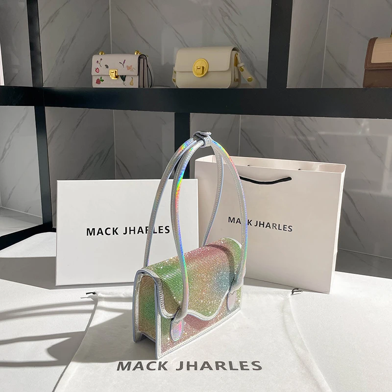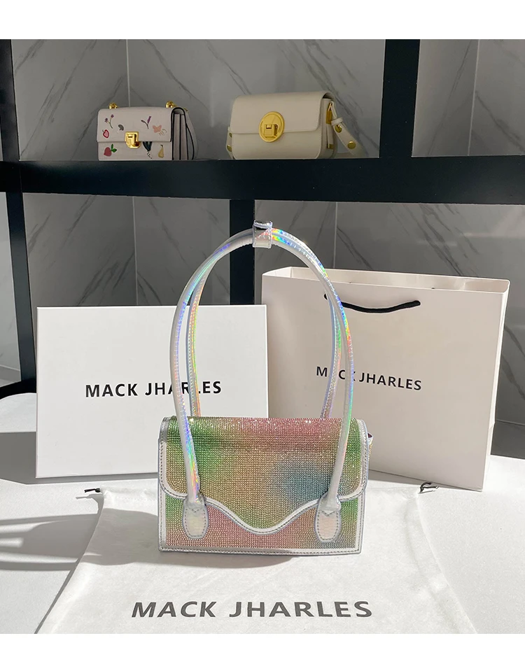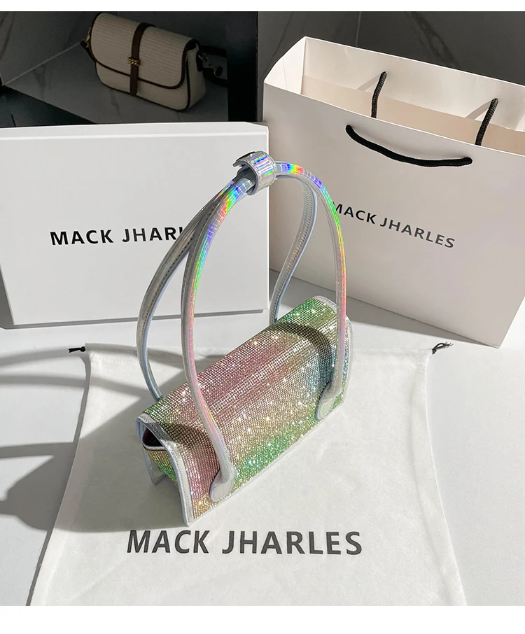 «Rainbow Color Gradient Leather Shoulder Armpit Bag Women Handbag Luxury Designer Shiny Crystal Rhinestone Diamond Evening Bag» по лучшей цене на рынке! Всего за 40$ (3800рублей)