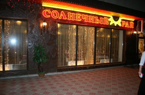 Кафе «Солнечный рай» находится на улице Губанова в доме 17а . Это позитивное во всех смыслах заведение привлекает внимание ярким праздничным оформлением как снаружи, так и внутри .