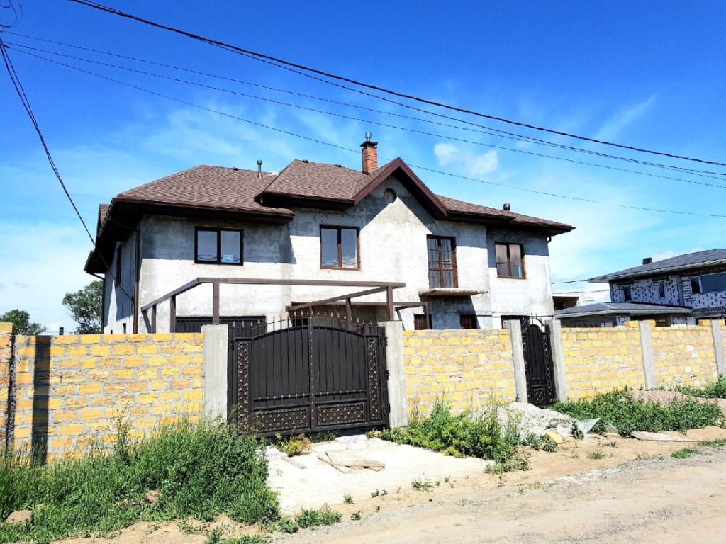 Предлагается новый 2-этажный коттедж с участком земли в Мирное, на ул . Марчика . Общая площадь- 170 кв . м . В доме есть вода, есть электричество, предусмотрена кладовая, отопление, канализация .
