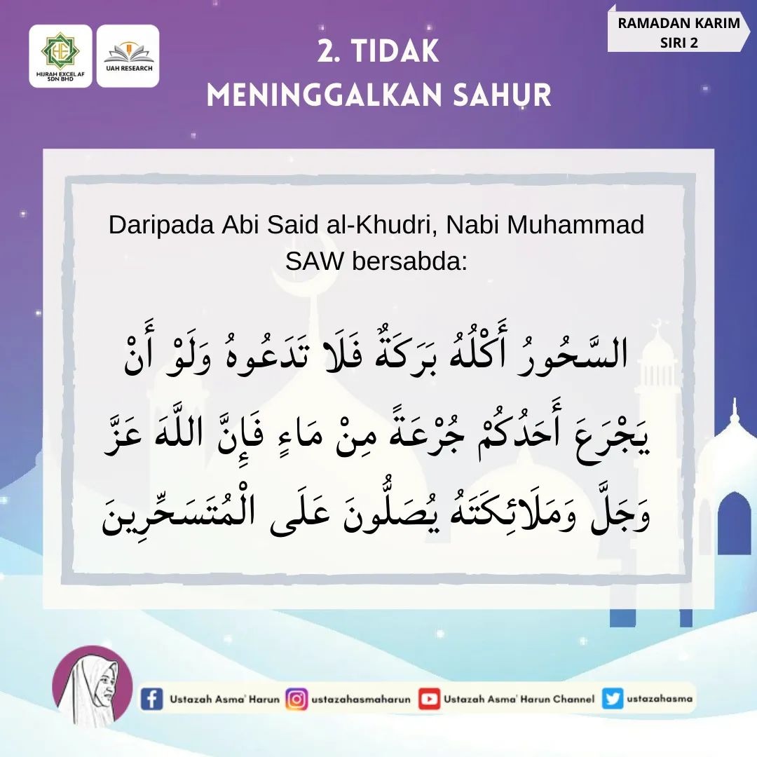 SuhainiSelamat menyambut Ramadan al-Mubarak dan menjalani ibadah puasa penuh takwa dan iman.