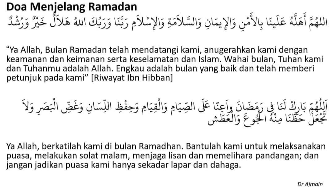 Selamat menyambut Ramadan al-Mubarak dan menjalani ibadah puasa penuh takwa dan iman.