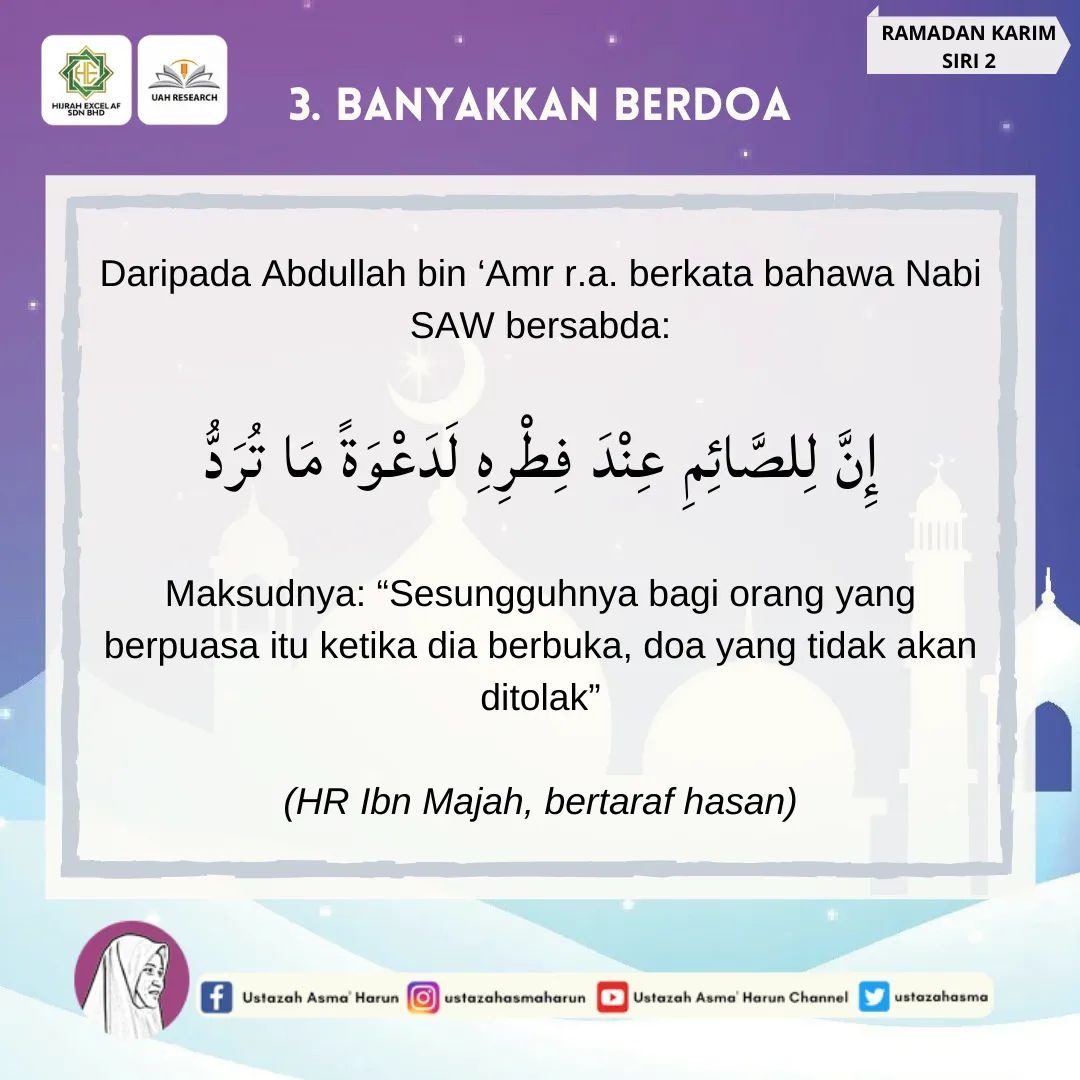 Semoga Ramadan kali ini lebih baik dari sebelumnya. Jom perbanyakkan amal.