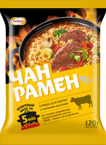Тип упаковки . Лапша Доширак Чан рамен быстрого приготовления с острой говядиной, 120г . Для Рамена идеальная лапша . Пробовали сделать рамен на другой, более популярной в России лапше, получилось совершенно не то .