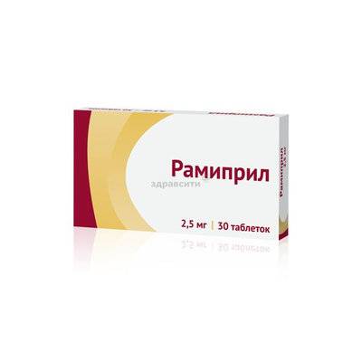 Рамиприл - ингибитор АПФ . Продается только по рецепту специалиста . МНН - Рамиприл . Лекарственная форма - таблетки белого цвета, содержащие в составе 2,5, 5 или 10 мг действующего вещества . Сортируются в упаковки по 28 или 30 штук . Состав и механизм действия Лечащее вещество - рамиприл .
