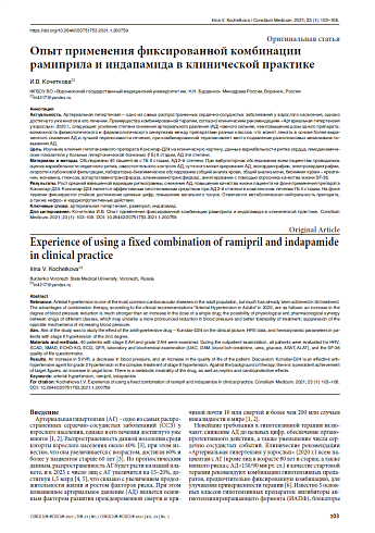 Применение фиксированной комбинации «амлодипин + рамиприл . . .