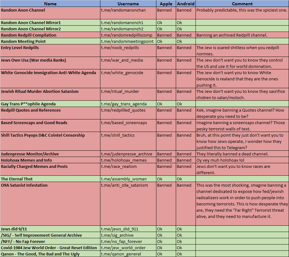 Probably that's why Telegram did't ban us, they knew perfectly there were no calls for violence or anything like that in our channels, maybe the Telegram staff is getting first-hand-redpilled about the Jews and their power lmao.