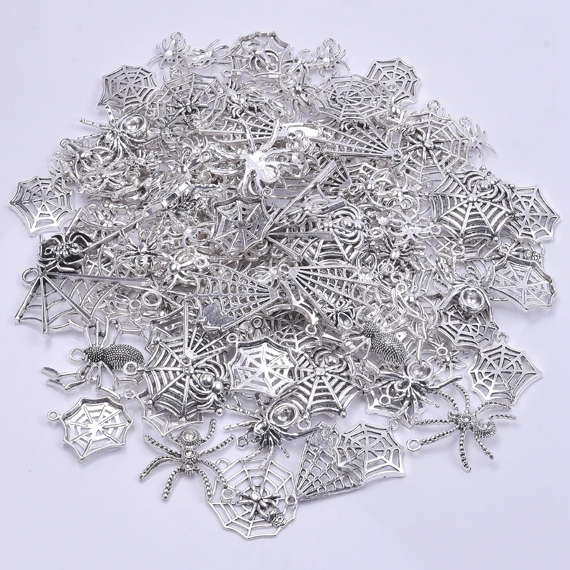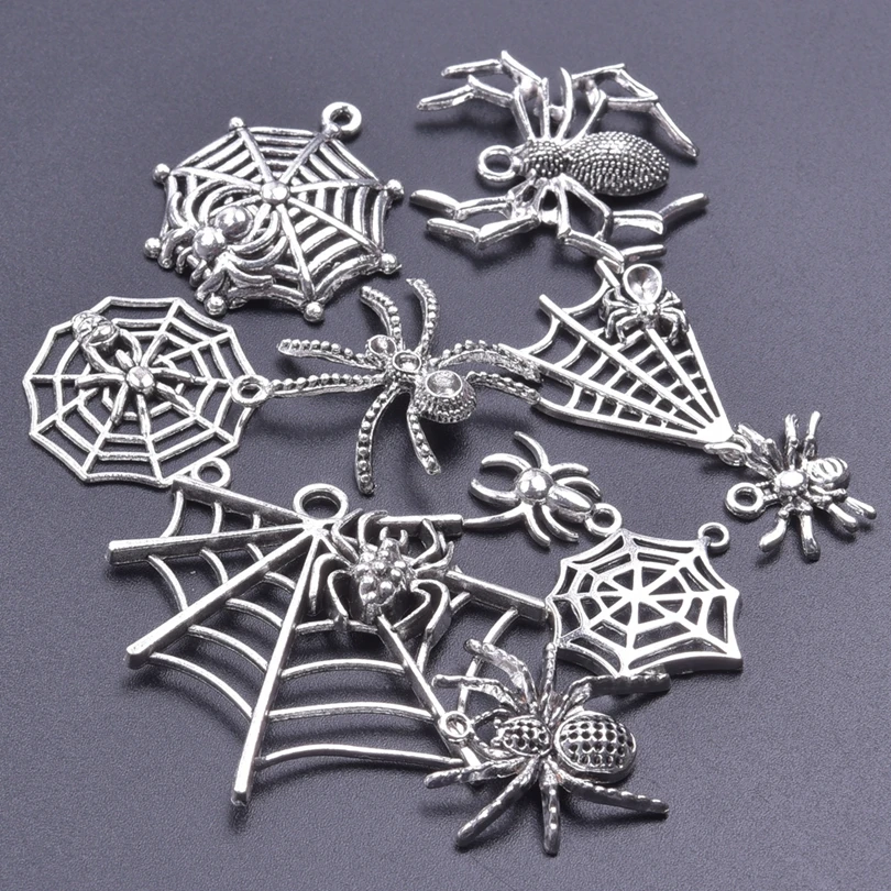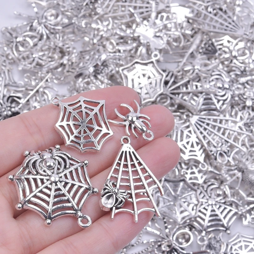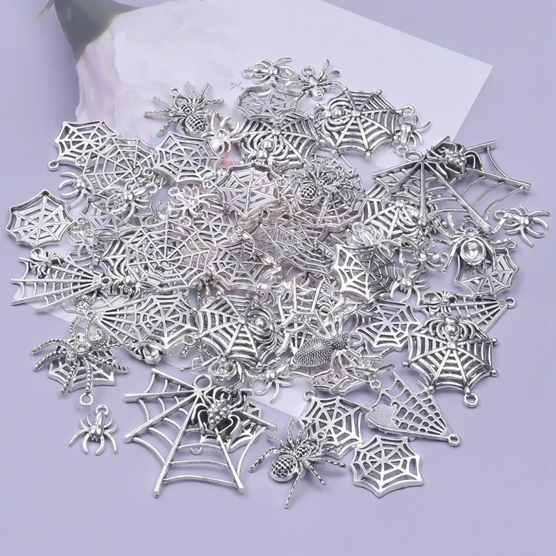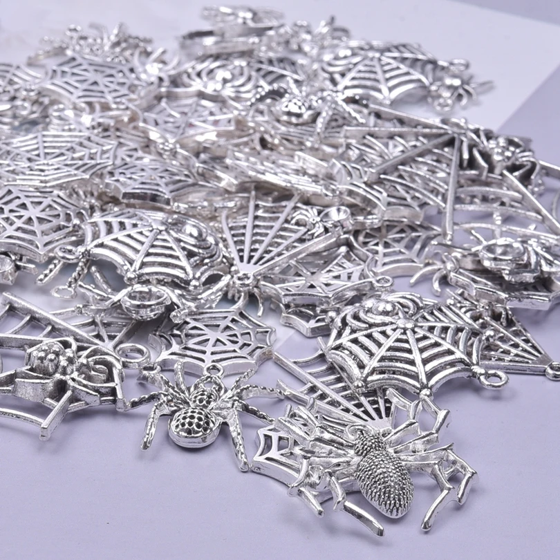 Random Mix 10/20/30Pcs Animal Spider Pattern Spider Web Silver Color Pendant Charms For Women/Men Jewelry Making Craft Materials - Купить с бесплатной доставкой