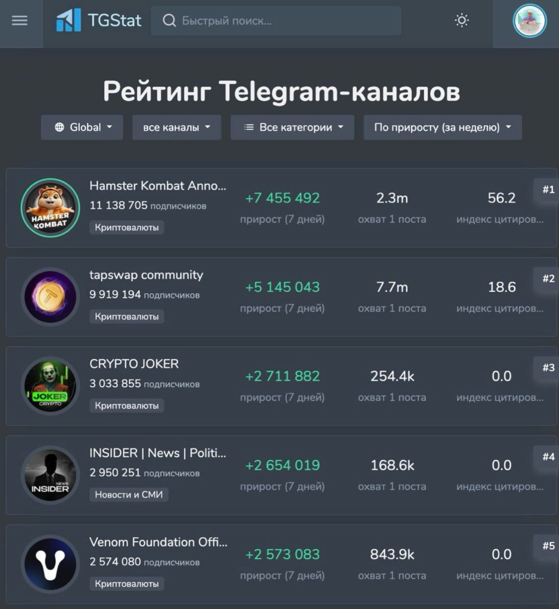 Раньше всех телеграмм tgstat